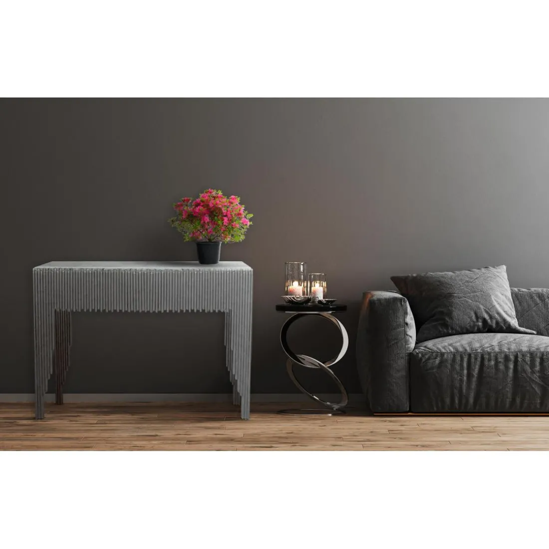Cette Console design GALANTINE Marbre Blanc pieds Argent se caractérise par le design très graphique et original de sa structure. Elle offre à disposition un plateau résistant et chic, parfait pour mettre en valeur vos articles de déco.