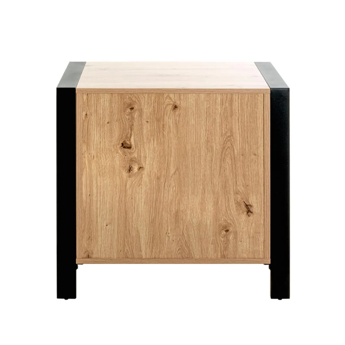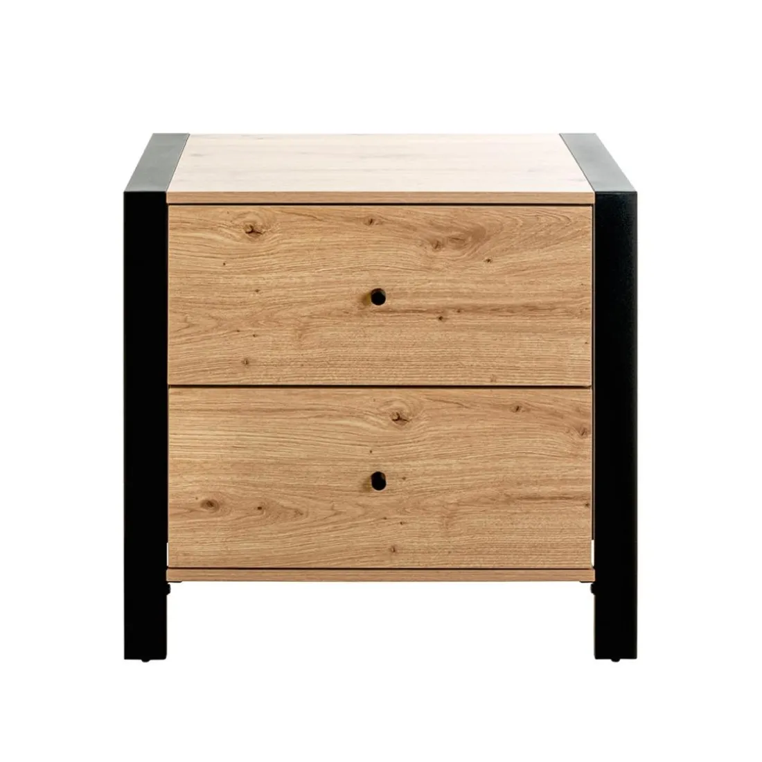 Caractéristiques Console en métal noir avec 2 tiroirs décor chêne