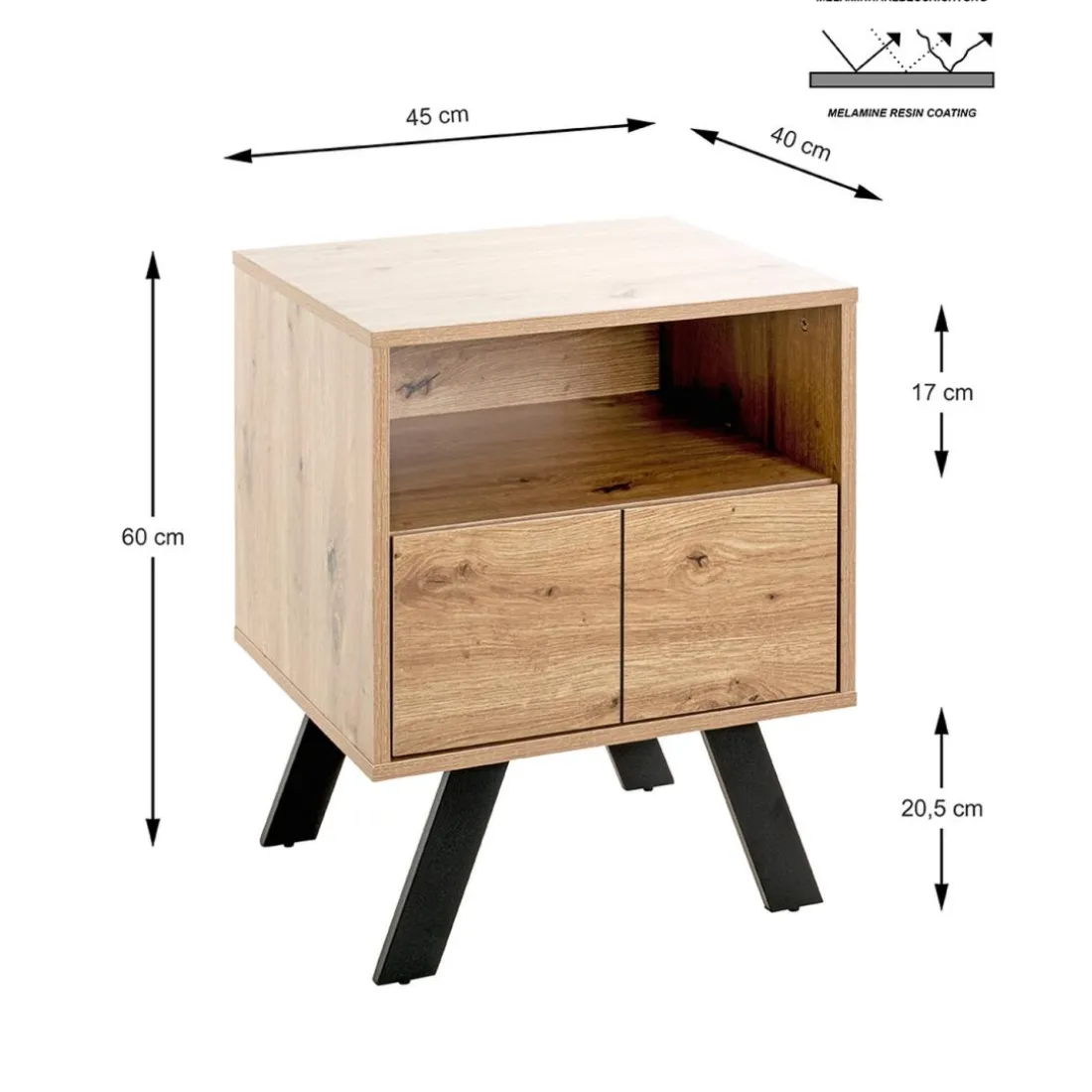 Caractéristiques Console en métal noir avec corps et tiroir décor chêne