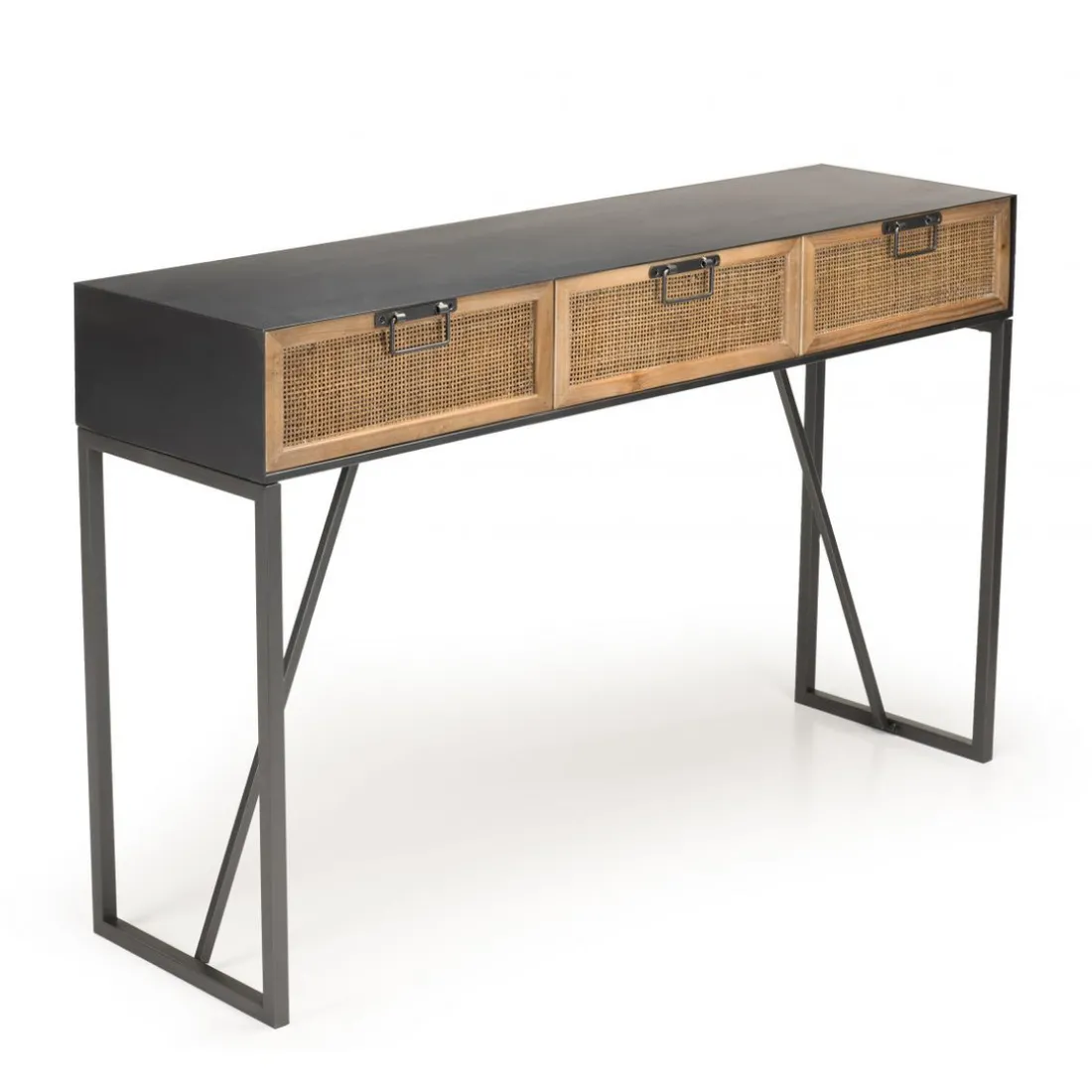 Caractéristiques Console métal 3 tiroirs cannage – DORIA