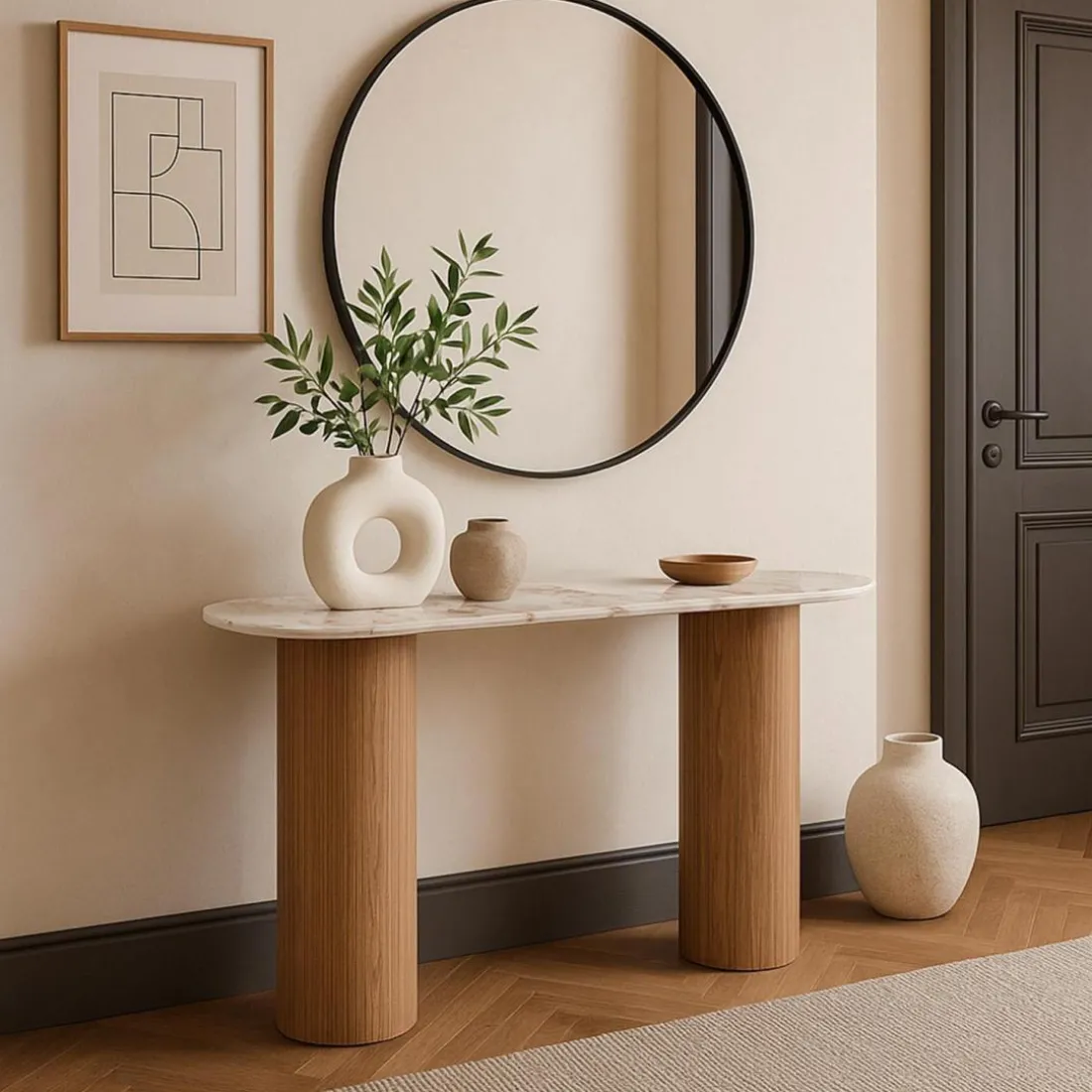 Caractéristiques Console moderne pieds colonnes Eglantine Bois et Céramique Effet marbre Blanc