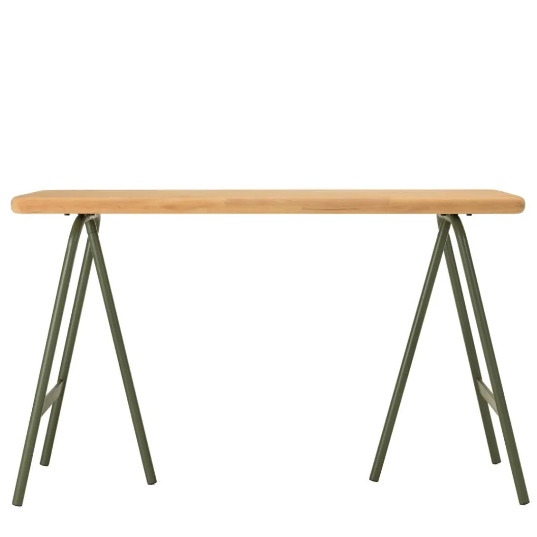 Caractéristiques Console plateau en pin et pieds tréteaux en métal vert HELENA