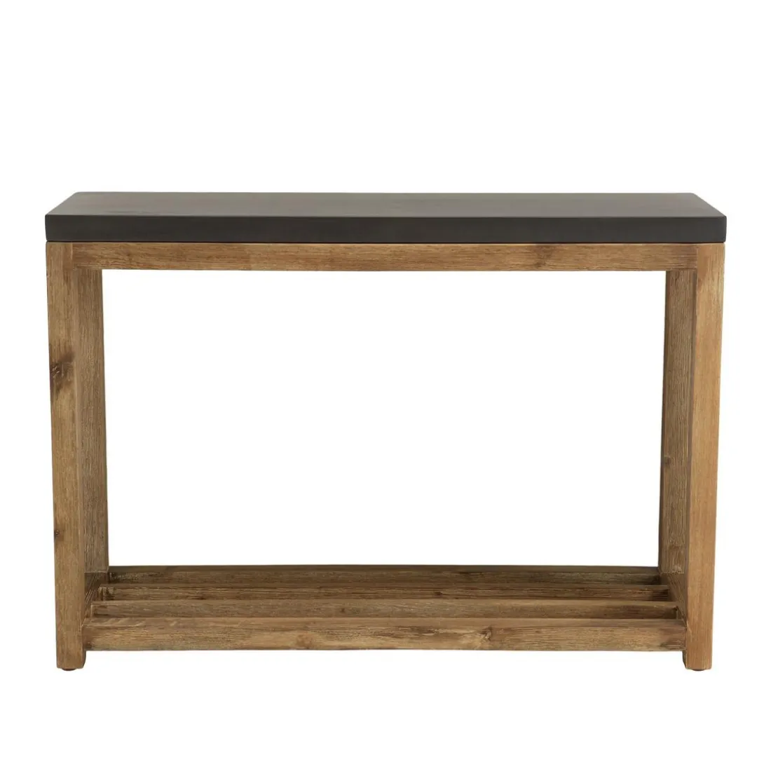 Caractéristiques Console rectangulaire petit modèle double plateau effet béton foncé et acacia HECTOR