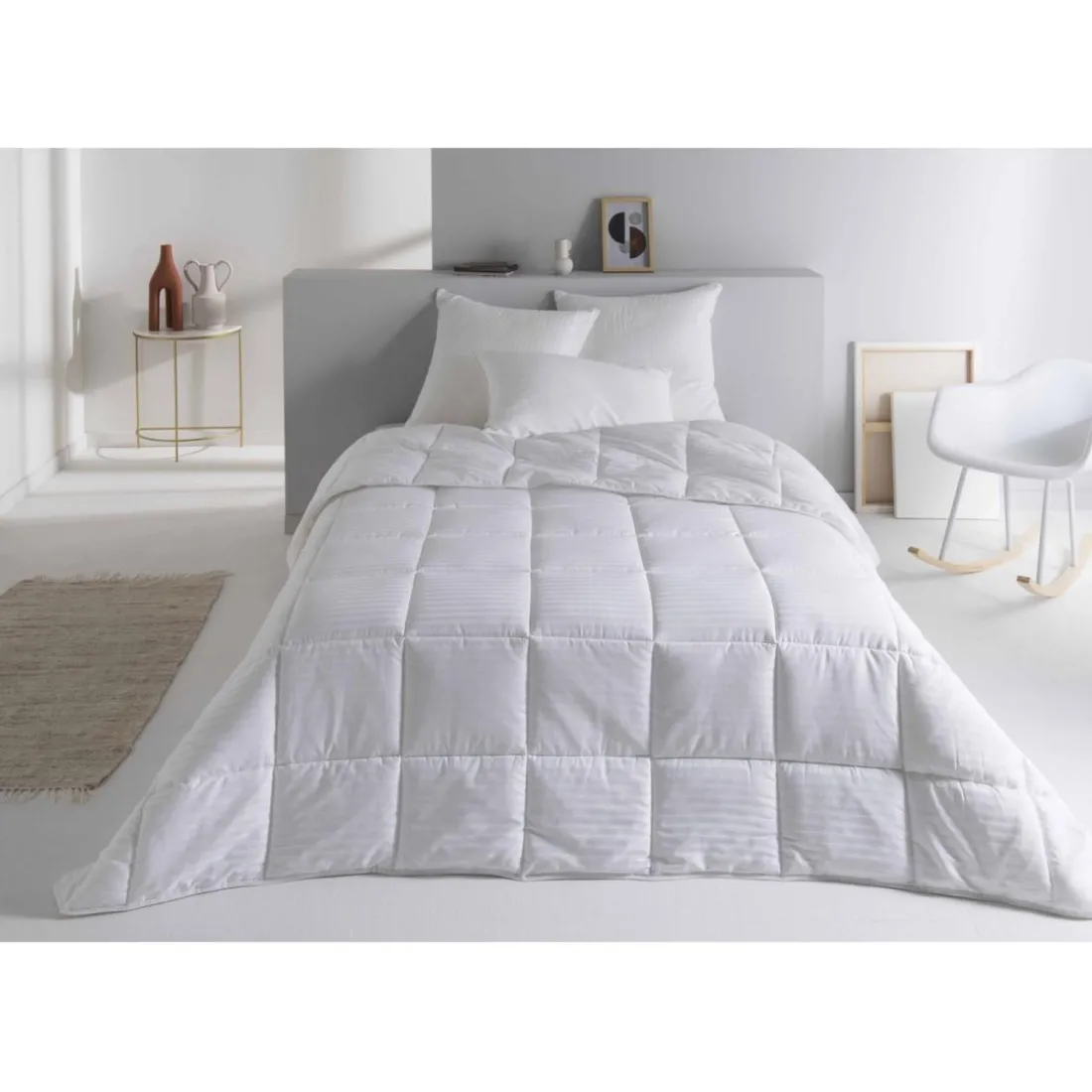 COUETTE LÉGÈRE OU CHAUDE – Enveloppe 100% coton – Satin 95 fils – Rayures jacquard – Garnissage 100% polyester – Fibres creuses siliconées – 200 g/m² – 400 g/m²