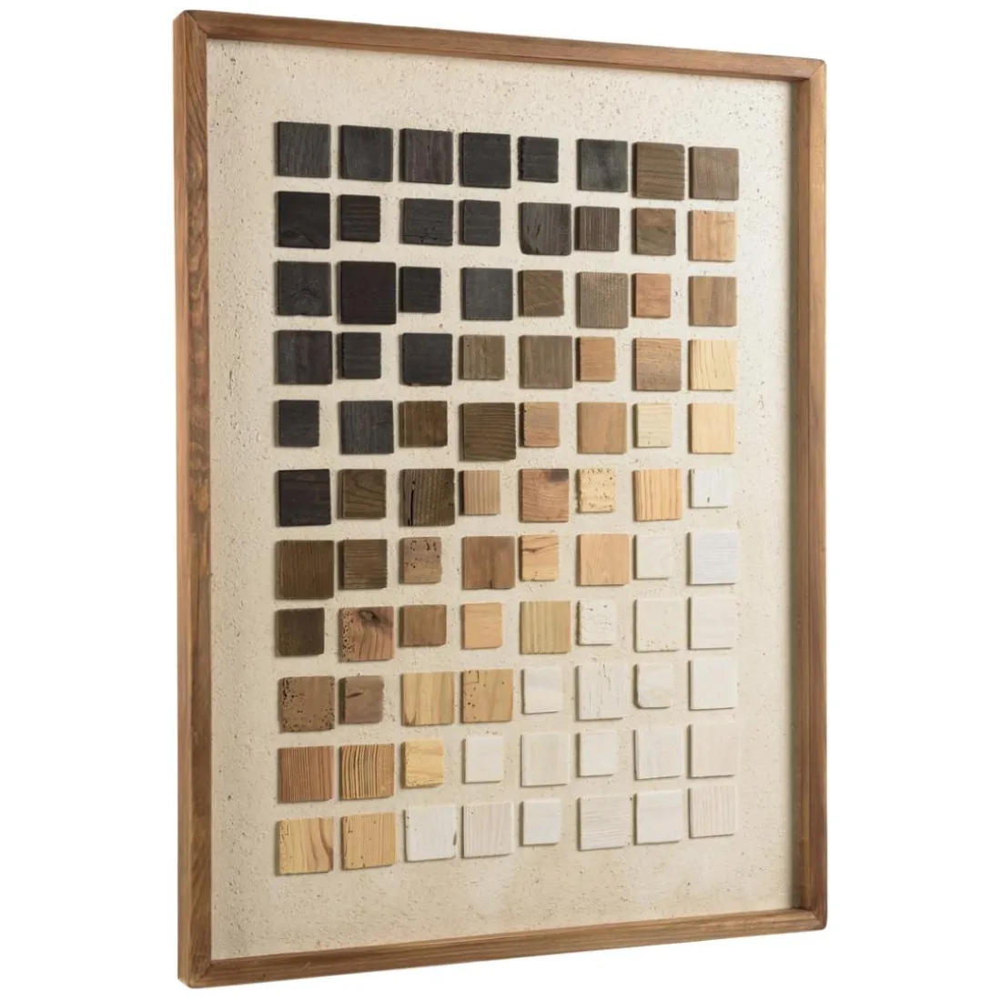 La décoration murale Multicolore de la marque MACABANE est un sublime dégradé de mosaïque. Faite en pin recyclé, elle est agrémentée d’un tissu de couleur blanche. Ce tableau, qui mêle subtilement les tons chauds et froids, apporte de la chaleur et une note d’originalité à votre intérieur. Le travail minutieux du pin offre un relief et une dimension unique à cette œuvre. Elle saura trouver sa place dans votre décoration.