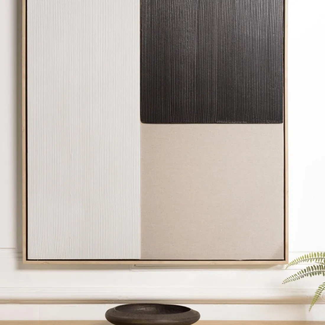 La décoration murale d’une dimension de 83x123cm, de la marque MACABANE, est un mélange subtil de matières. Le cadre bicolore HOMER accentue son allure contemporaine. Cette œuvre, dont la matière principal est le polyester beige, apportera une touche d’élégance et de modernité à votre intérieur. Sa grande taille en fait un choix idéal pour habiller un grand mur ou pour servir de pièce maîtresse dans un espace de vie. À noter que son style contemporain lui permet de s’intégrer facilement dans différents types de décor. Les détails de la conception, visibles sur l’image fournie, soulignent la qualité et le soin apporté à la réalisation de cette pièce.
