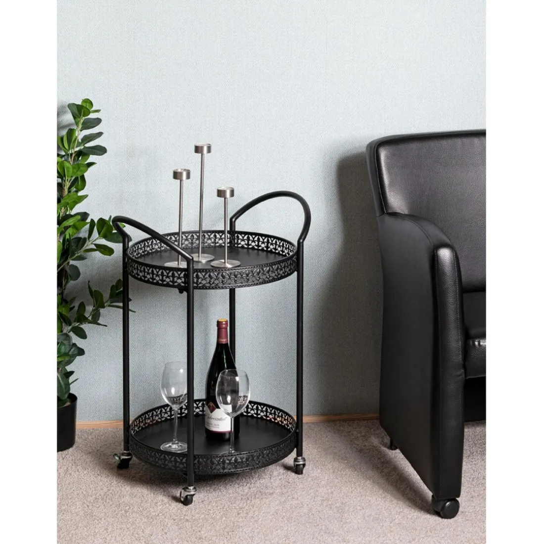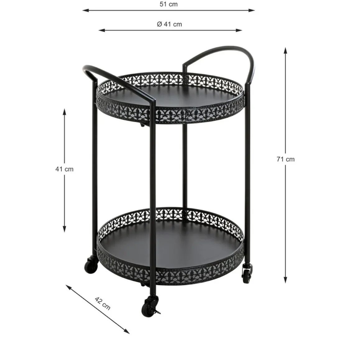 Caractéristiques Desserte à roulettes métal laqué noir