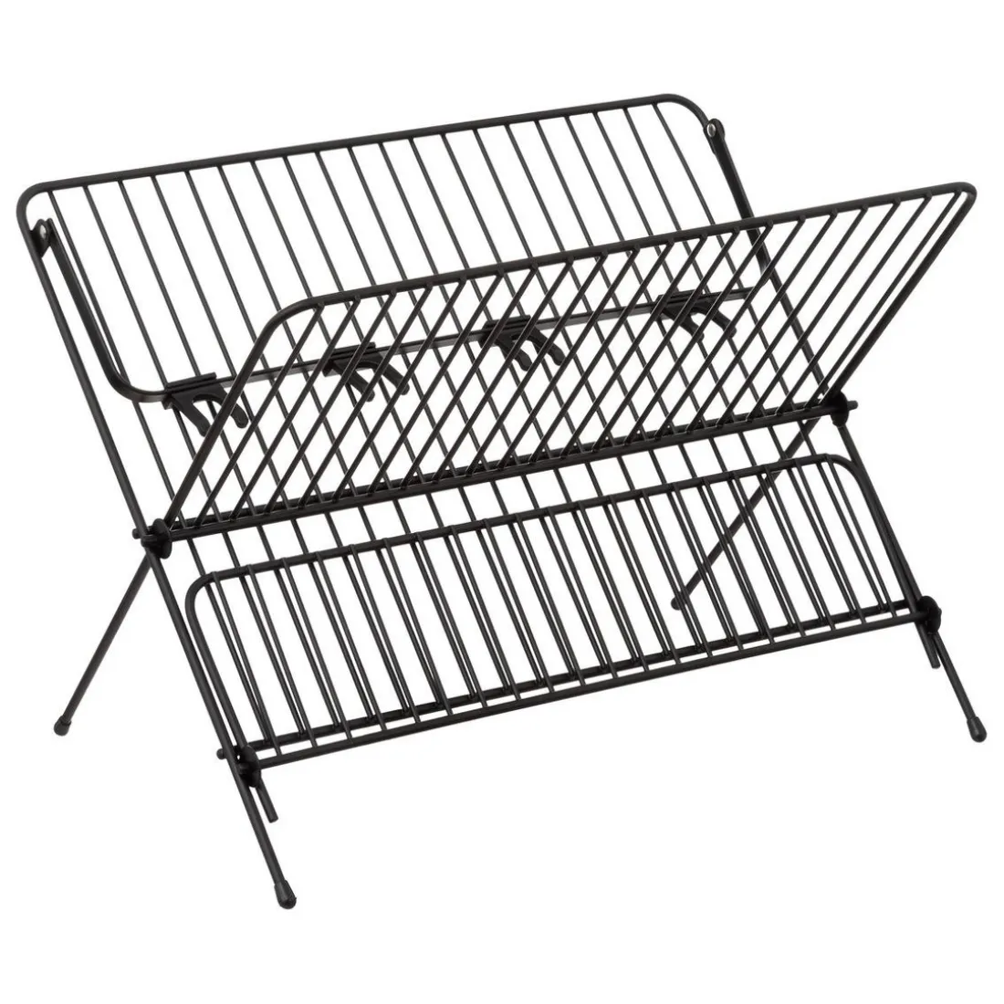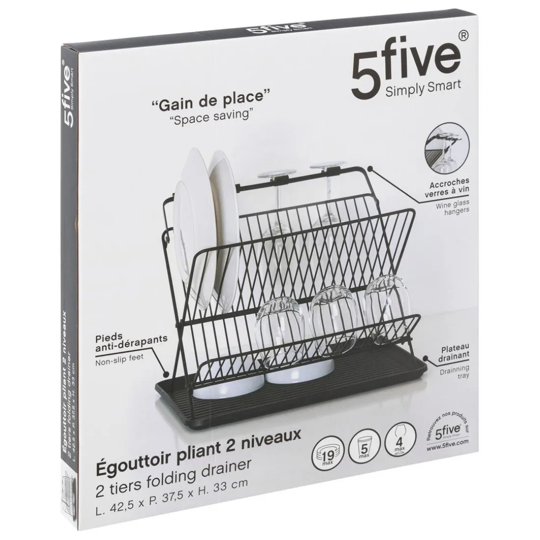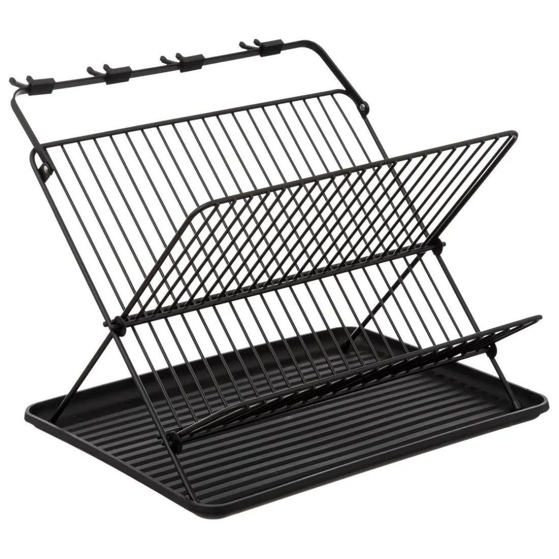 Caractéristiques Égouttoir pliant 2 niveaux avec plateau en métal noir