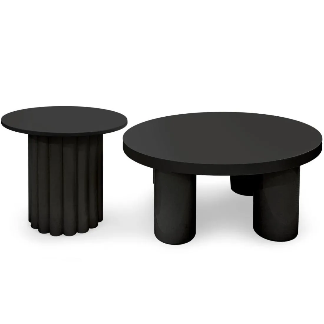 Caractéristiques Ensemble de 2 tables basses rondes avec piètement style colonne Storia Noir