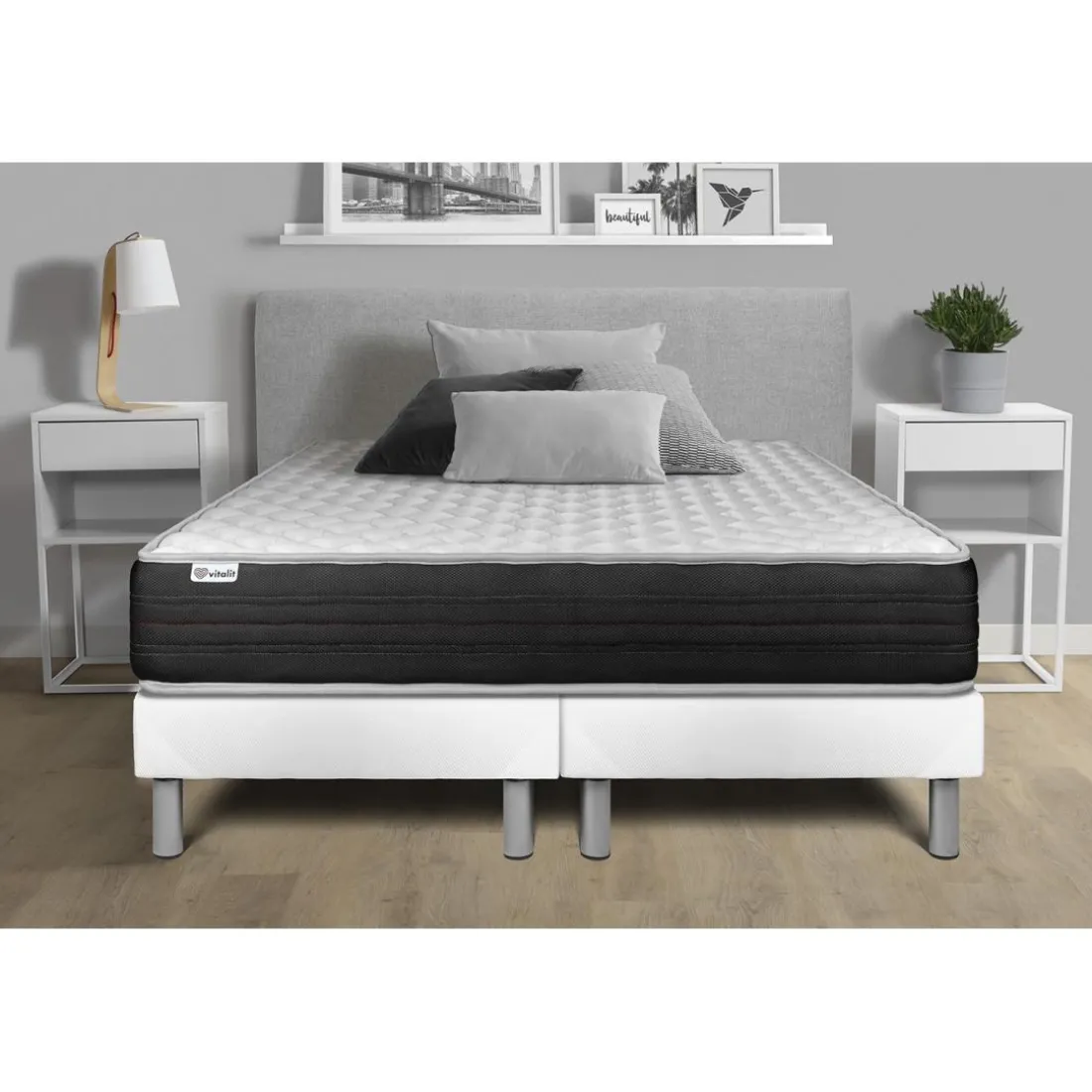 Le Prestige literie vous offre l’ensemble VITALMEMO ONE. Ce matelas de couleur blanc est un véritable havre de douceur, qui invite à la détente et au bien-être. Conçue en mousse polyuréthane à mémoire de forme, sa matière apporte un soutien ferme mais confortable à votre corps, permettant à vos muscles de se détendre pleinement. Son style authentique, souligné par des détails soignés présents sur l’image fournie, s’intégrera harmonieusement dans votre espace de sommeil, tout en apportant une touche d’élégance et de sophistication. En bref, un lit complet qui saura satisfaire les dormeurs les plus exigeants.