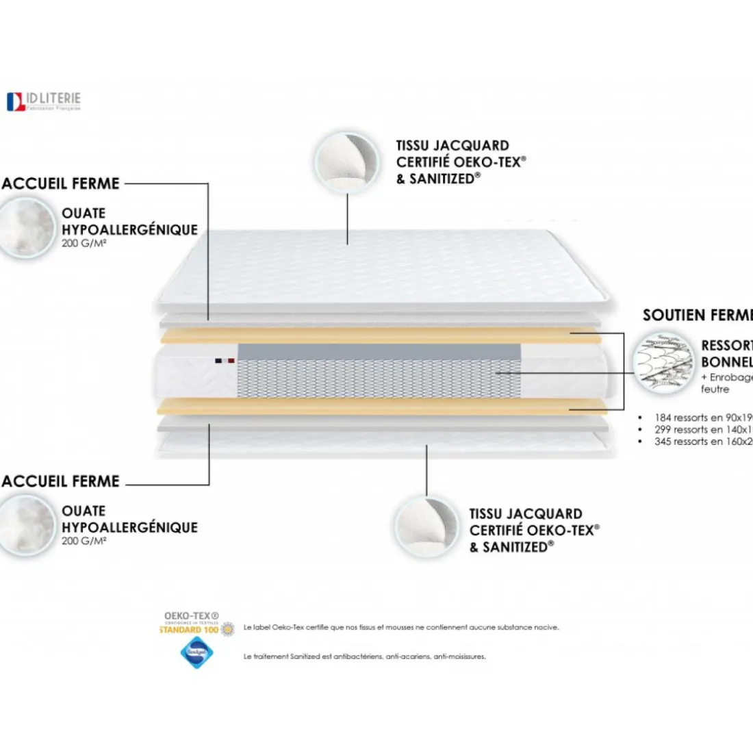 Caractéristiques Ensemble Matelas Ressorts Fermes biconiques SPECTOS + Sommier Made in France – Sommier Vert céladon