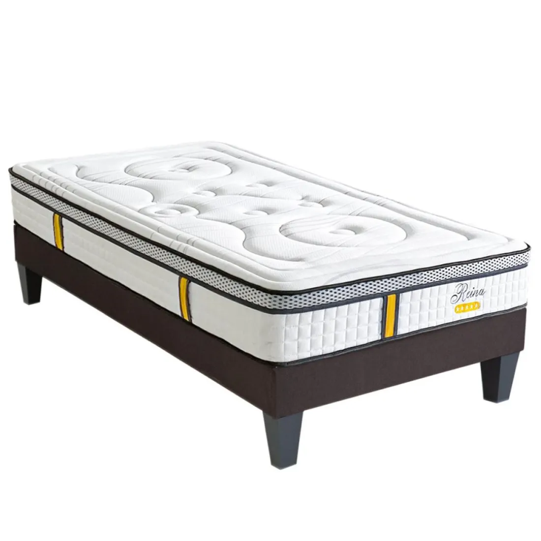 L’ensemble Reina 2.0 comprend un matelas hybride et un sommier à lattes. Le matelas a un accueil équilibré et un soutien ferme. Composé de ressorts ensachés et de mousse mémoire de forme, il offre à la fois un bon soutien du corps et une ergonomie parfaite, pour un confort optimal et des nuits totalement réparatrices.