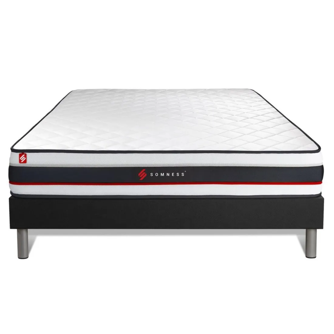 Obtenez une nuit de sommeil réparatrice avec l’Ensemble sommier matelas FORM, une création élégante et confortable de la marque Somness. De couleur Noir, l’ensemble est revêtu d’un tissu doux et résistant qui offre une expérience de couchage supérieure. Son style authentique ajoute une touche de sophistication à toute chambre à coucher. La conception du matelas, détaillée par l’image fournie, semble promettre un soutien ergonomique optimal, tandis que le sommier massif garantit la durabilité. Cette combinaison parfaite propose une solution de sommeil complète pour les utilisateurs exigeants en matière de confort et de design.