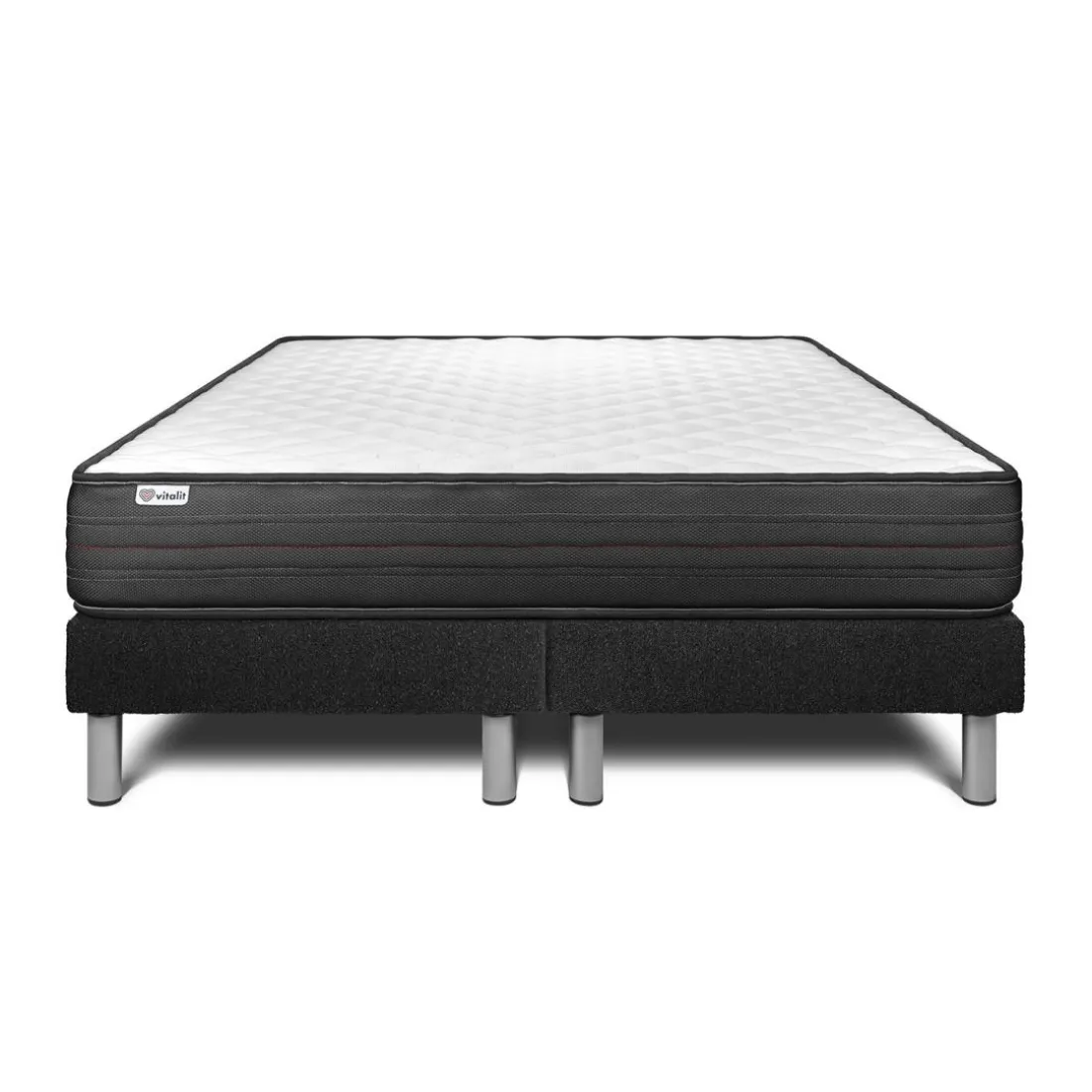 Découvrez l’ensemble matelas sommiers VITALPOWER de la marque VITALIT. Se différenciant par son coloris Noir sophistiqué et son revêtement en tissu de haute qualité, cet ensemble apporte charme et authenticité à votre chambre à coucher. Le matelas vous offre un excellent soutien, tandis que le sommier renforce sa résistance et assure une utilisation prolongée. Le style authentique de cet ensemble associe confort et résistance pour un sommeil réparateur. Avec son esthétique intemporelle, cet ensemble se fond parfaitement dans tous les types d’intérieurs, ajoutant une touche d’élégance à votre espace de repos.