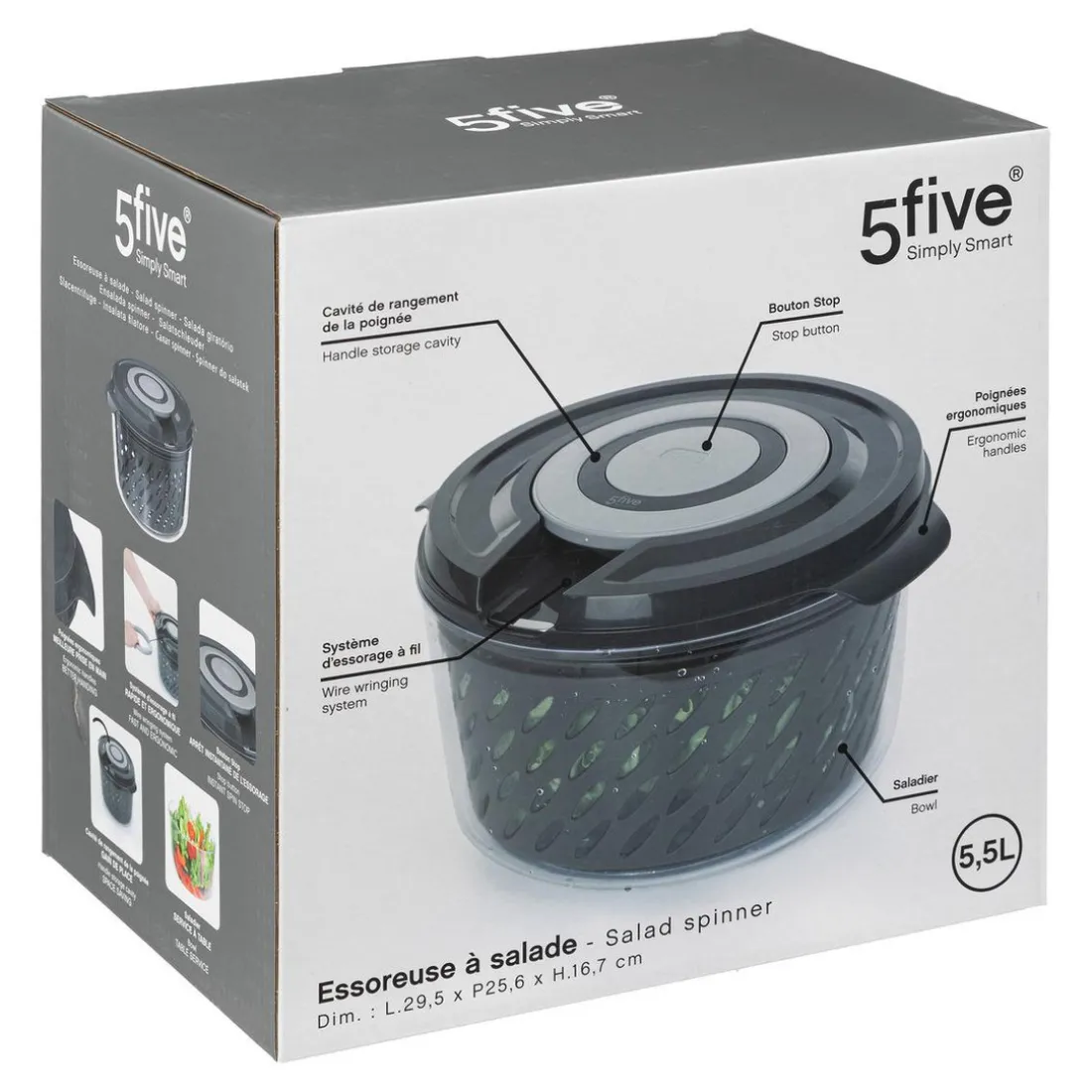 Découvrez cet ustensile de cuisine pratique de la marque 3S. x Home ! Cette essoreuse à fil de 5,5 L est parfaite pour égoutter vos aliments en un clin d’œil. Elle montre un design élégant et moderne avec une couleur gris qui s’adaptera à tous les styles de cuisine.