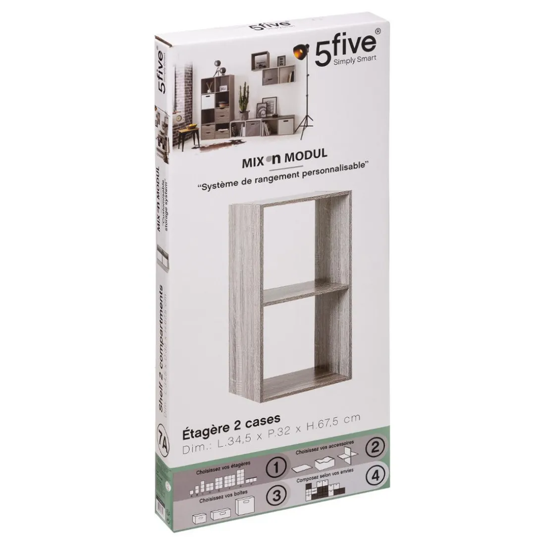 Caractéristiques Étagère « Mix » 2 cases gris en bois
