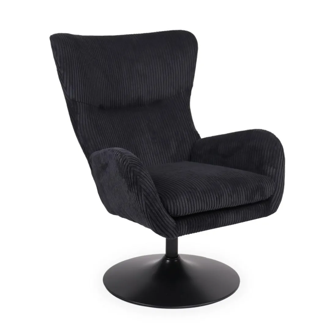 Caractéristiques Fauteuil pivotant style bergère Arthuro Velours côtelé Noir