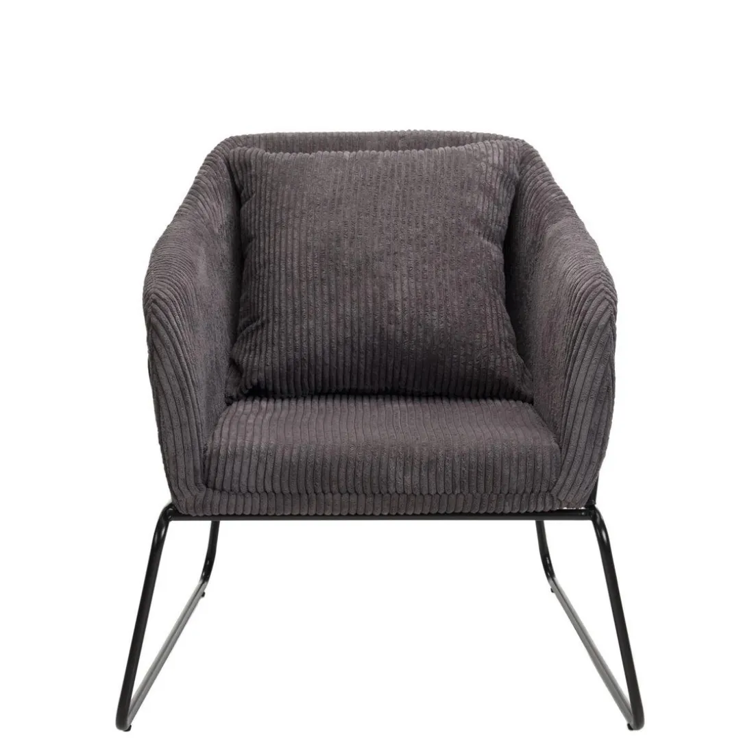 Caractéristiques Fauteuil Tissu AGATHE Velours Cotelé Gris Anthracite Pieds Évasés Métal