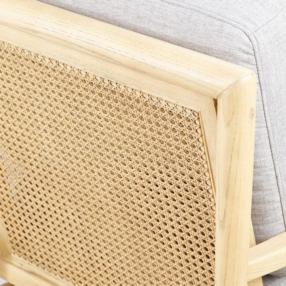 Caractéristiques Fauteuil tissu lin gris clair pieds frêne naturel