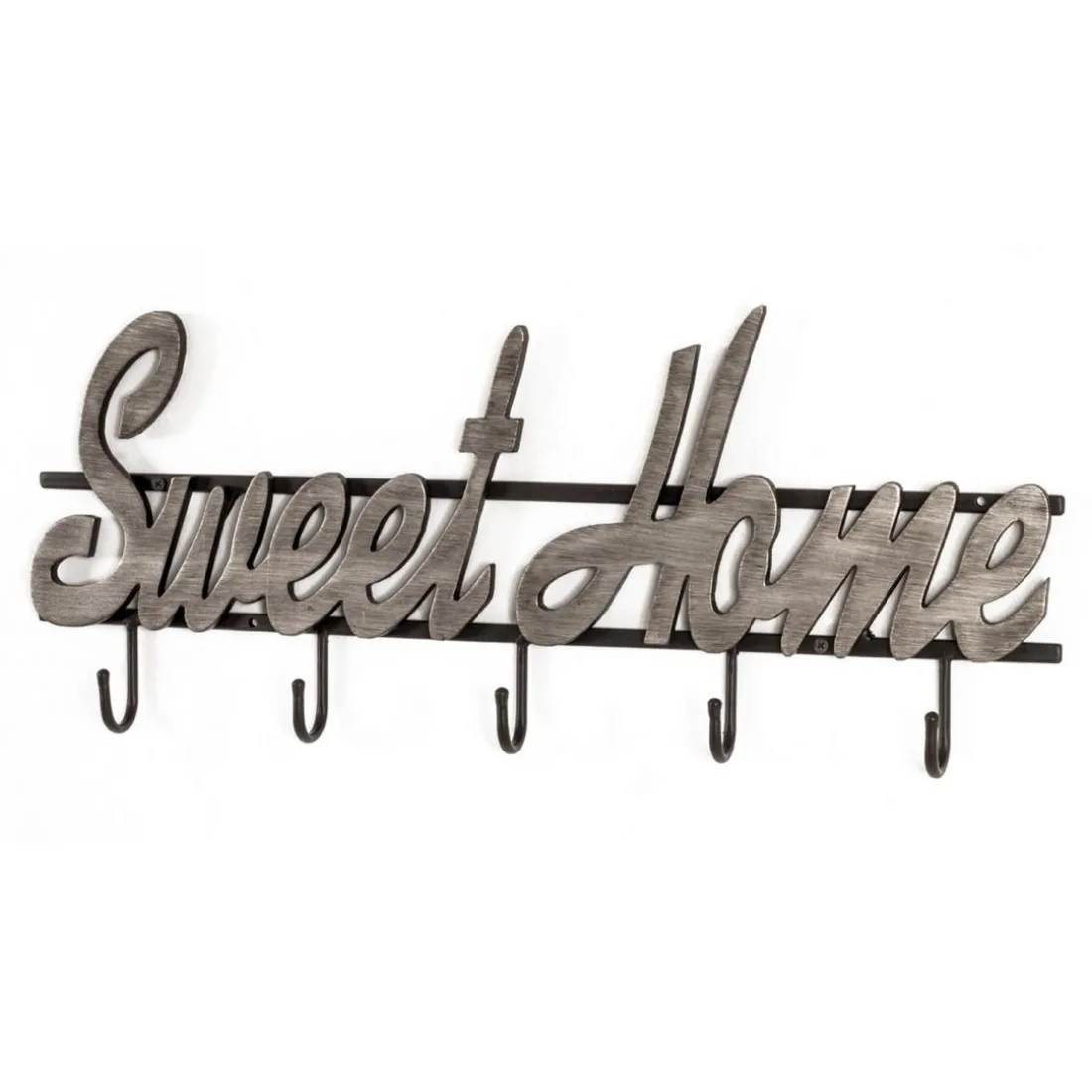 Dadre en métal laqué noir, écriture en MDF laqué argent, avec 5 crochets
