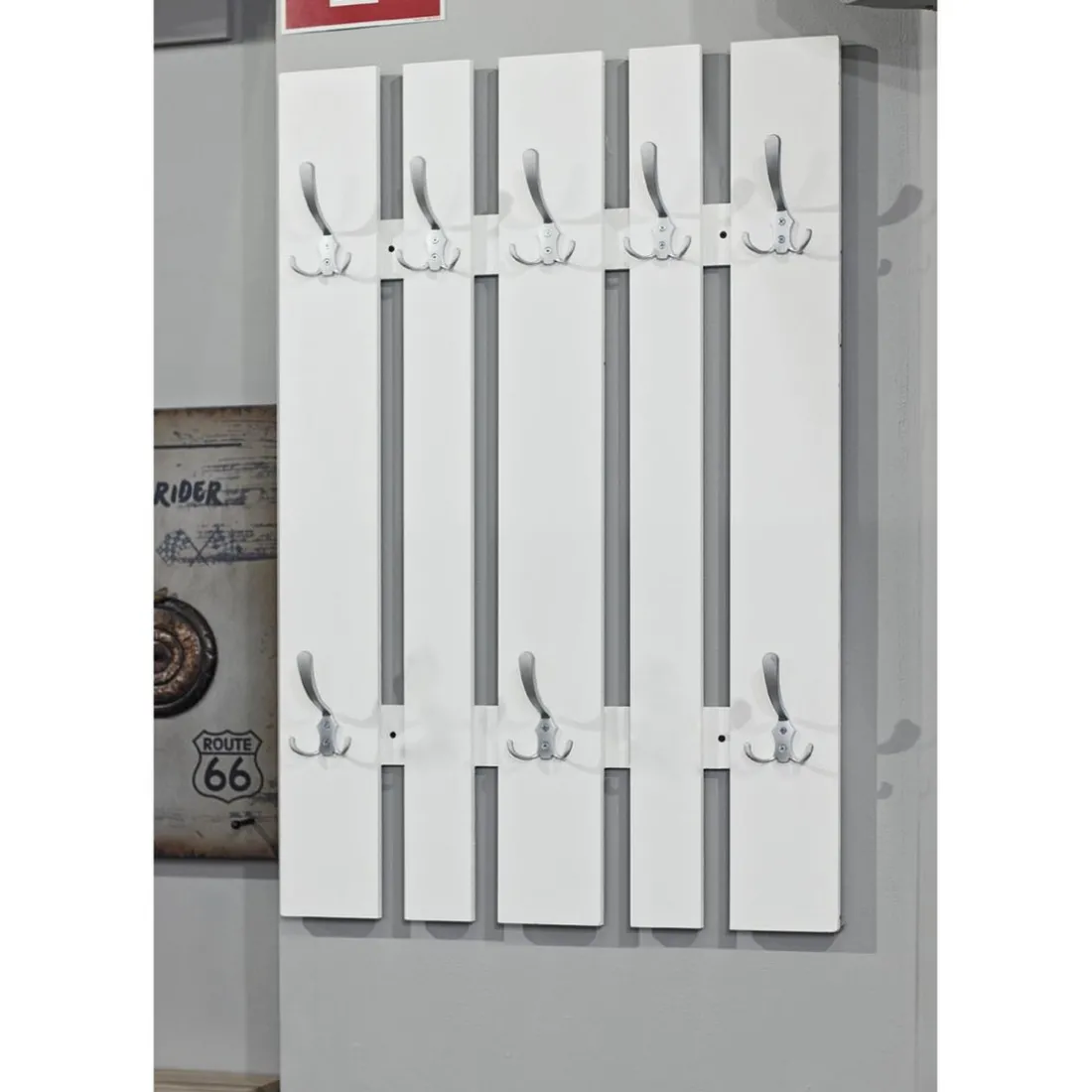 MDF laqué blanc avec 8 crochets en optique inox