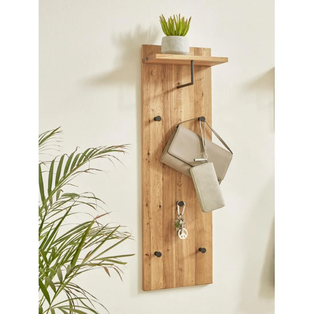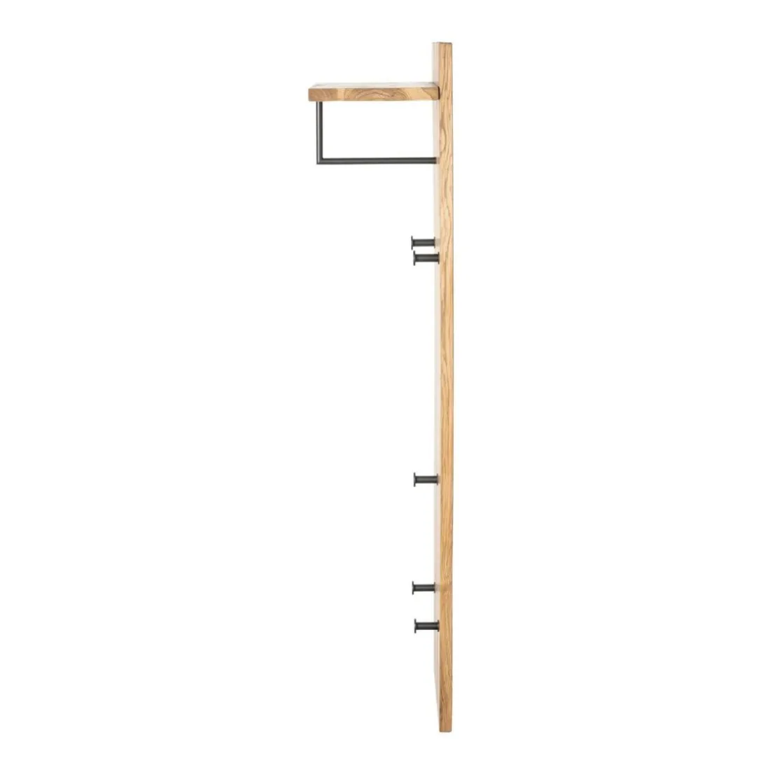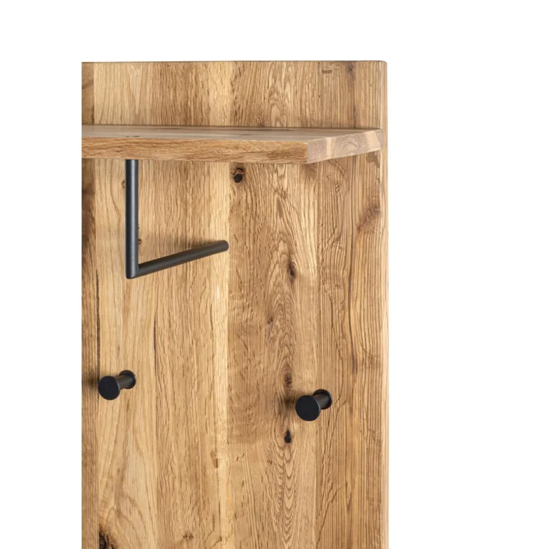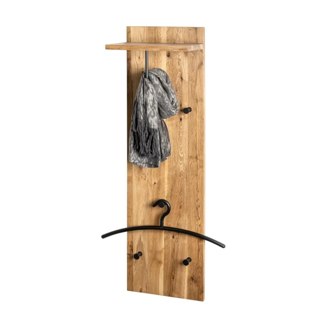Caractéristiques garderobe murale chêne et métal noir – 5 crochets et étagère