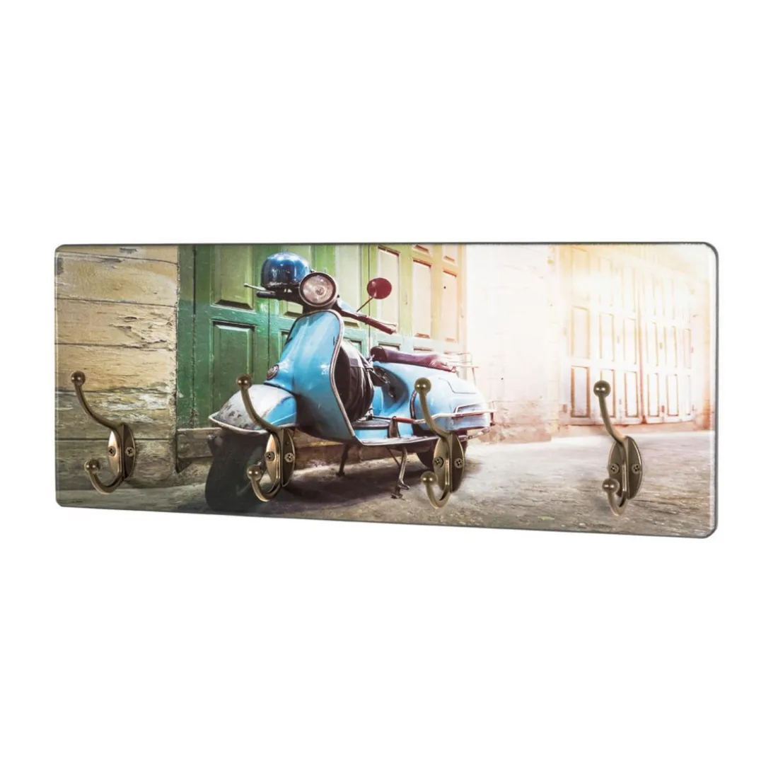 MDF avec impression par Ultra Violet (scooter), 4 crochets en métal laqué bronze