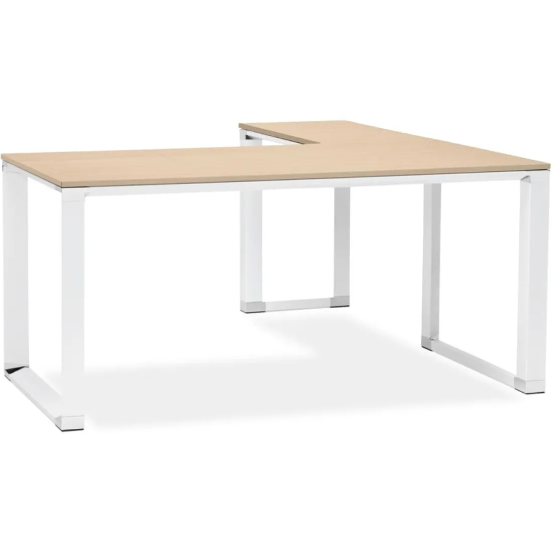 Caractéristiques Grand bureau de direction en angle ‘XLINE’ en bois finition naturelle et structure blanche