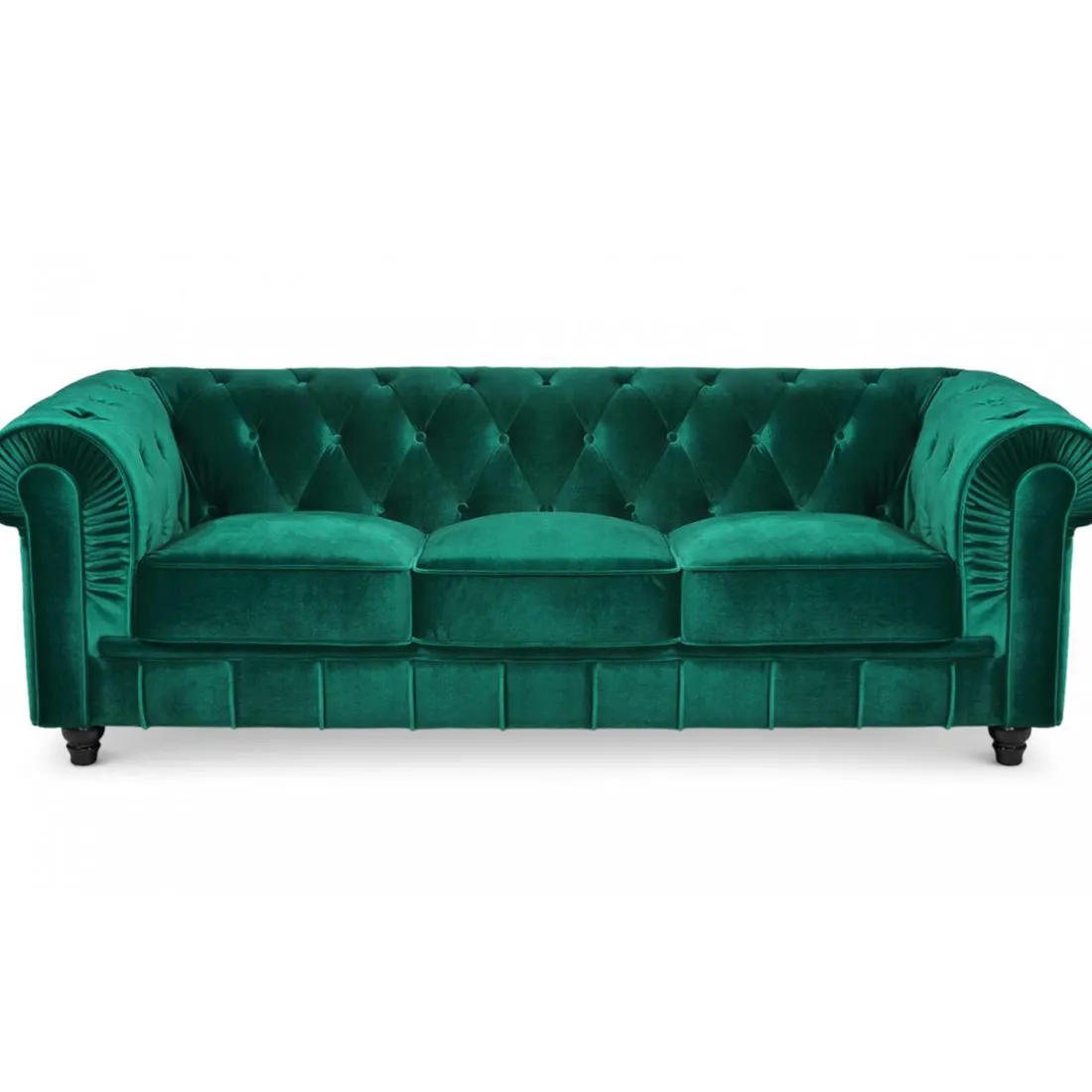 Caractéristiques Grand Canapé Chesterfield 3 places Velours Vert ANGOL