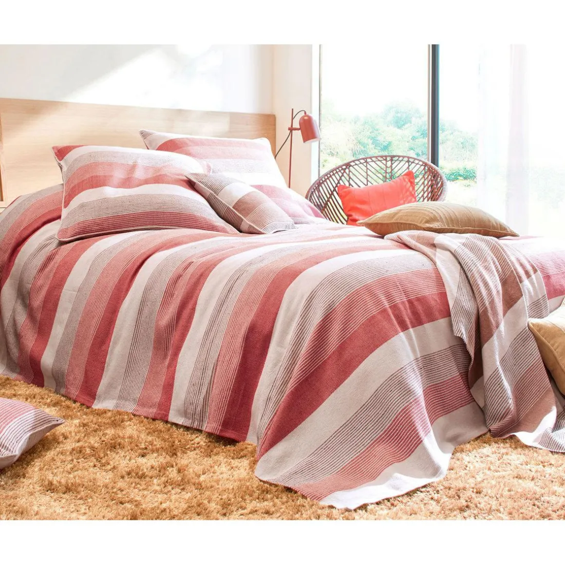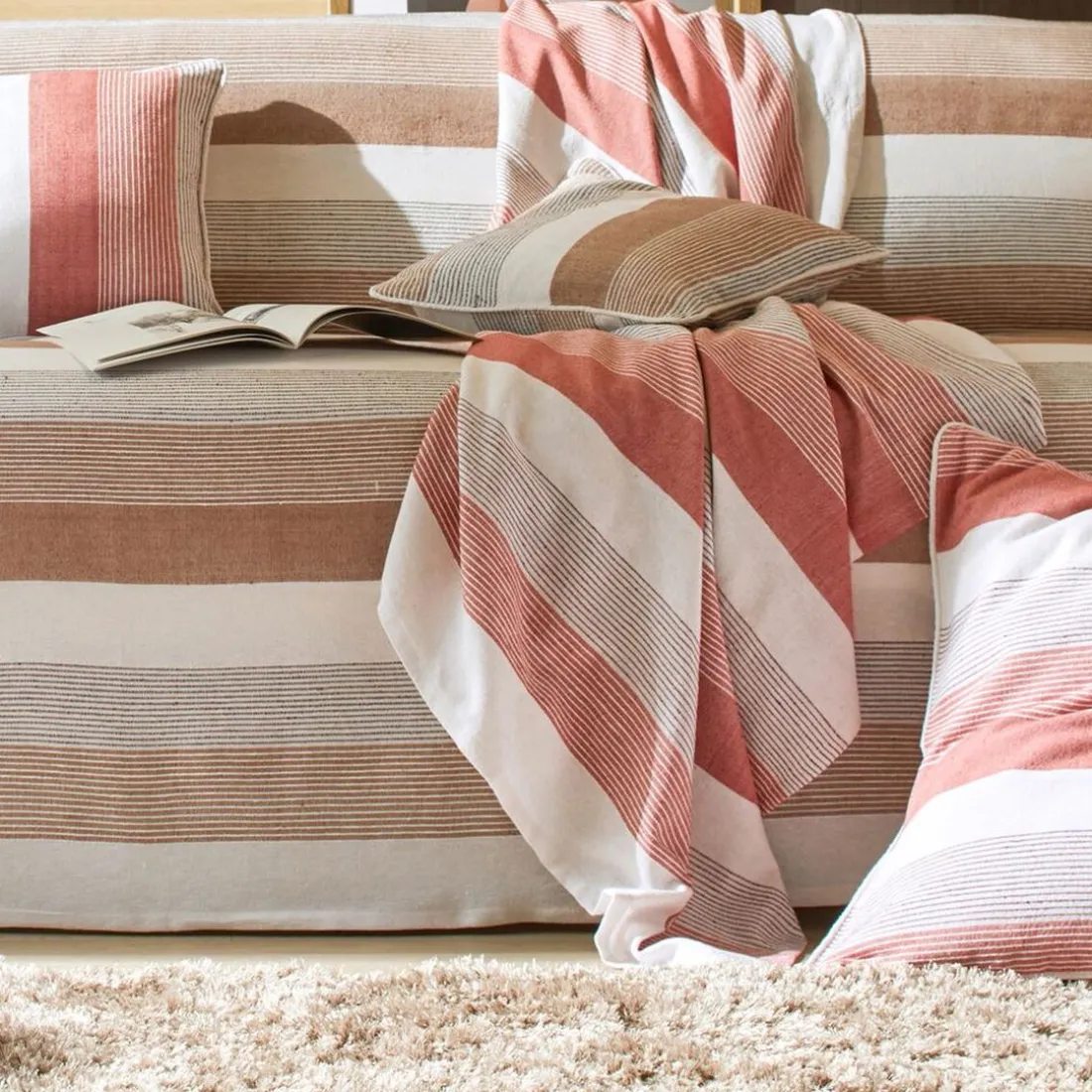 – Jetés de canapé tissés rayés en coton.
