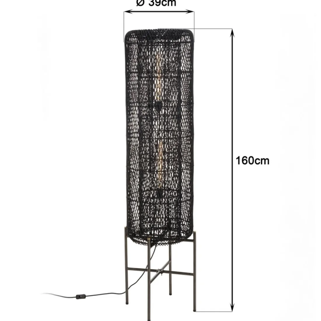 Caractéristiques Lampadaire rotin couleur noire pieds acier SIXTINE