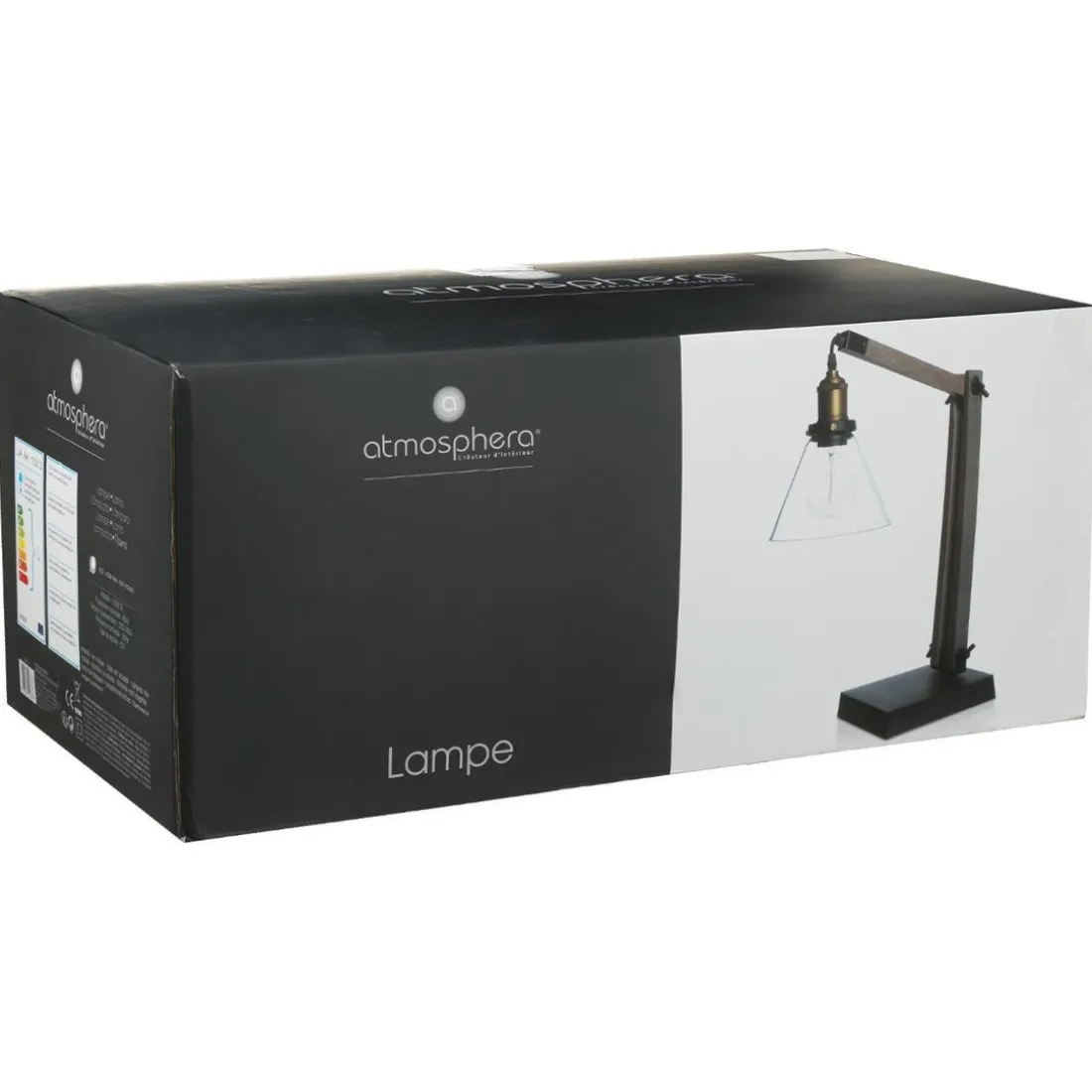 Caractéristiques Lampe en bois/métal et abat-jour en verre