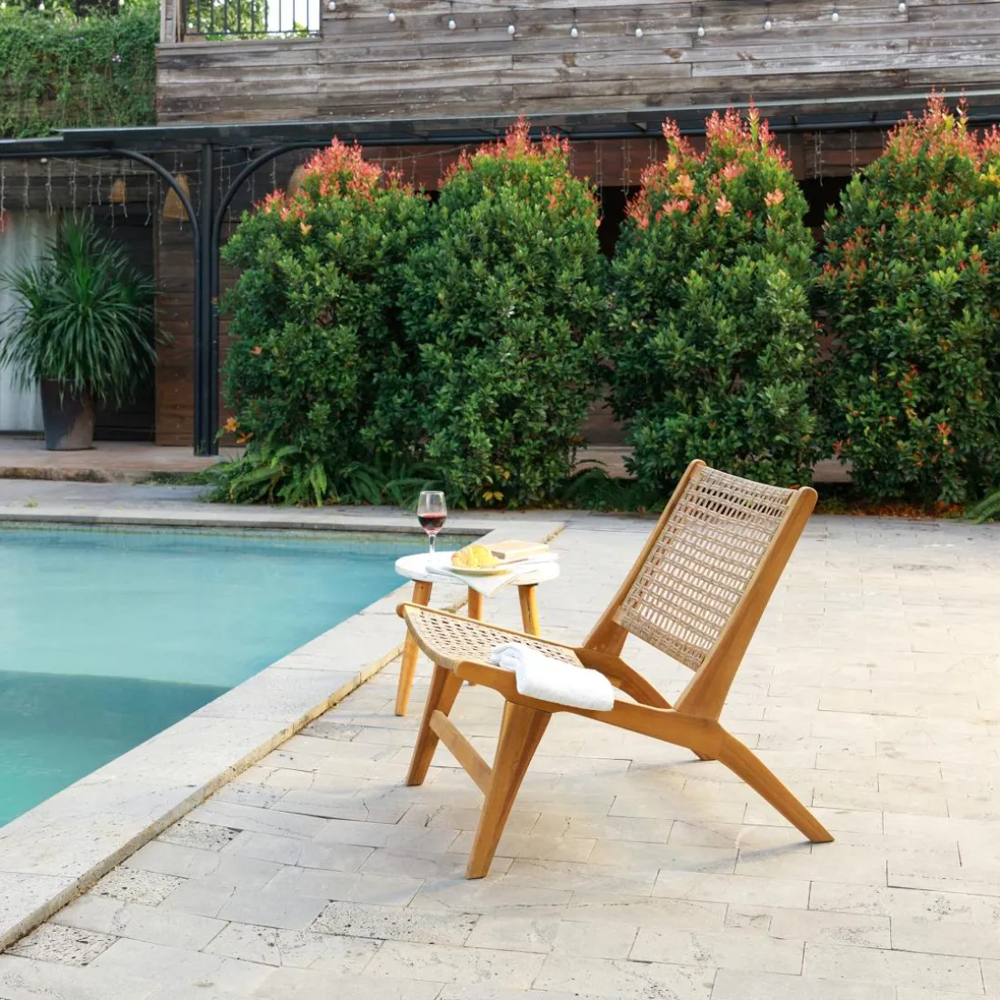 Caractéristiques Le fauteuil intérieur extérieur en acacia massif et corde ARICA, de style scandinave