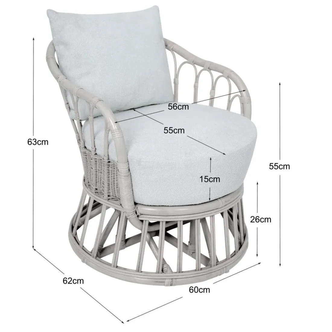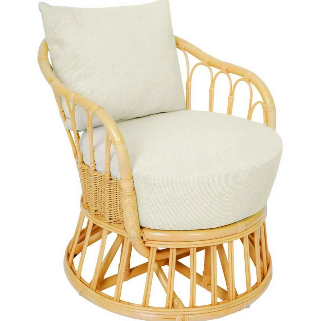 Caractéristiques Le Fauteuil PALOPO design scandinave épuré assise en rotin naturel et tissu etanche