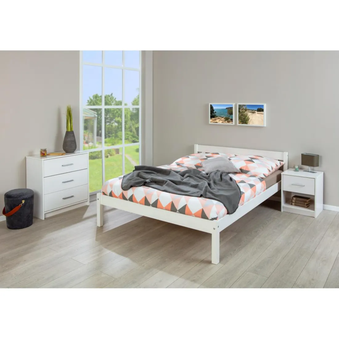 Vous ne pourrez plus vous passer de ce Lit 140×200 blanc MILAR. Ton blanc et structure simple soulignent son style moderne. La structure en bois massif se complète d’une couche de vernis qui ne demande qu’un minimum de nettoyage.