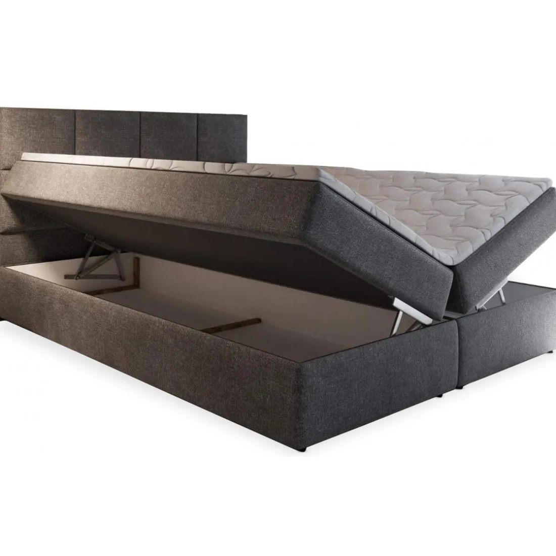 Craquez pour ce Lit Boxspring NALZEN 180cm Tissu Gris. Épuré et moderne, il a une tête capitonnée, deux matelas indépendants et deux coffres de rangement. Qui a dit qu’il faut choisir entre praticité et style ?