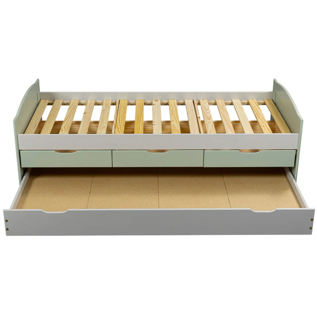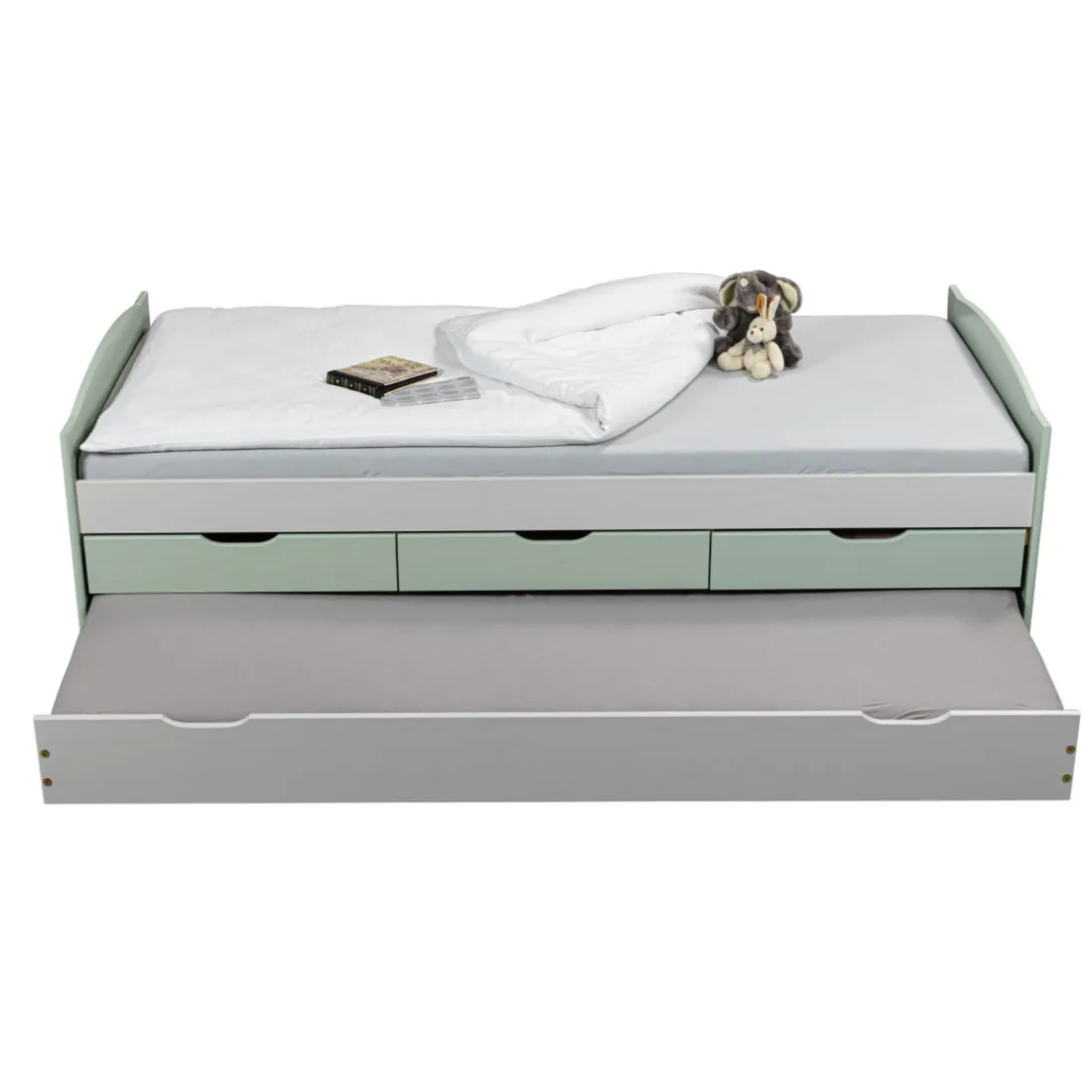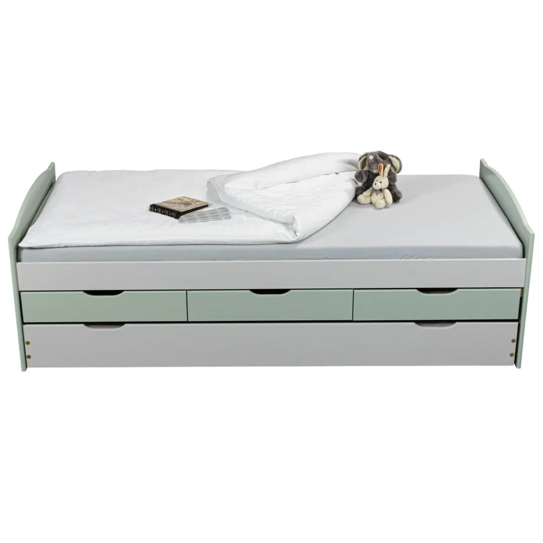 D’une conception moderne, le Lit Gigogne en Bois Massif Gris et Vert est une belle façon d’aménager la chambre d’ami ou d’enfant.