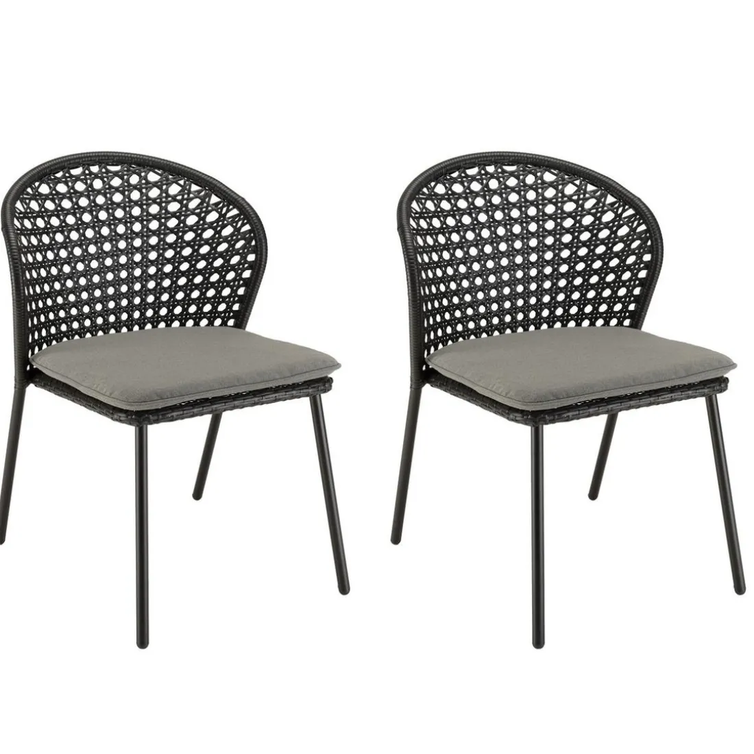 Caractéristiques Lot de 2 chaises rotin synthétique noir dossier arrondi ajouré MALO