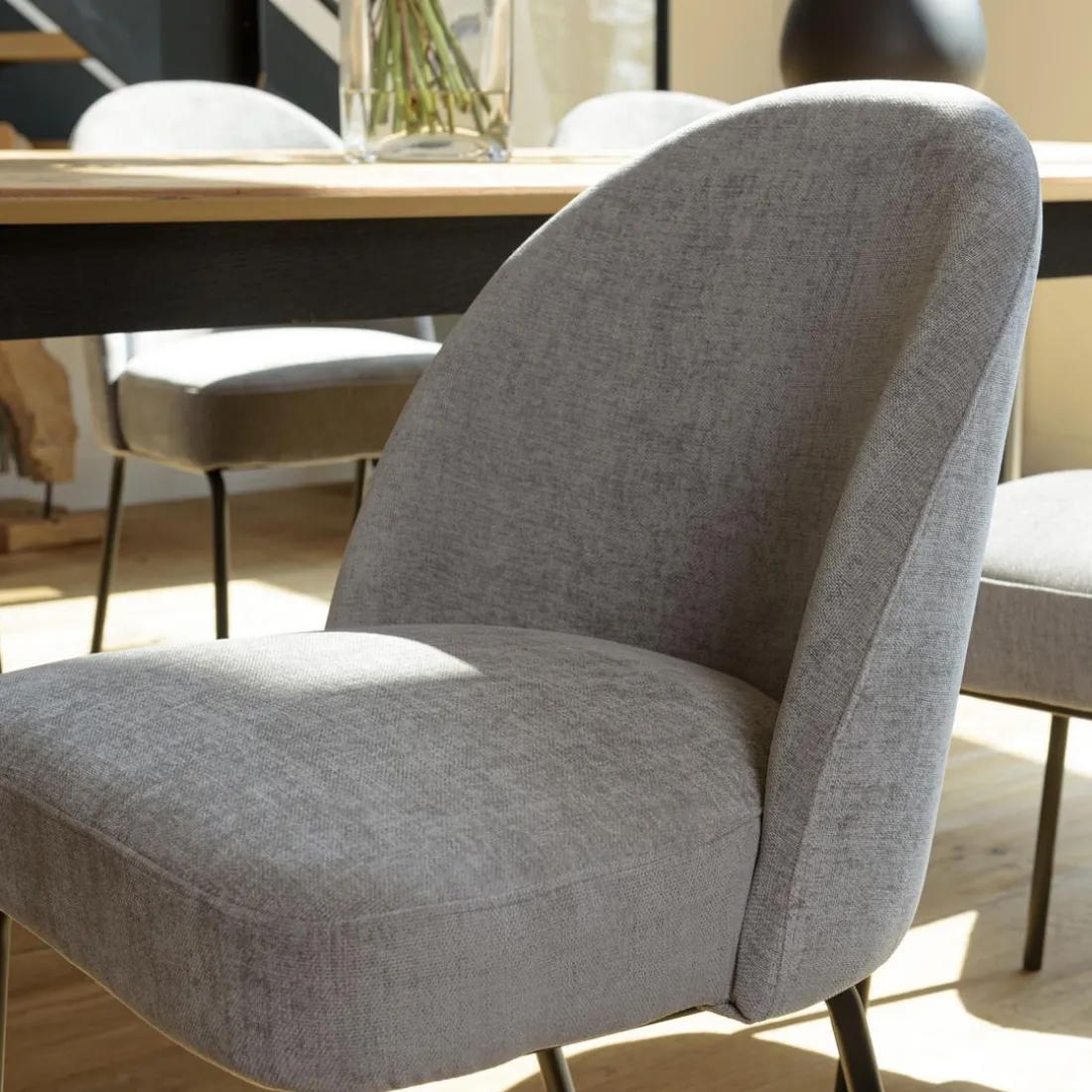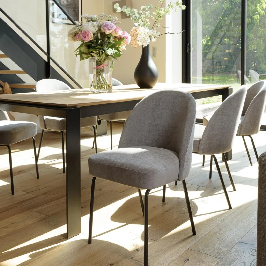 Caractéristiques Lot de 2 chaises tissu couleur lin pieds acier noir ULYSSE
