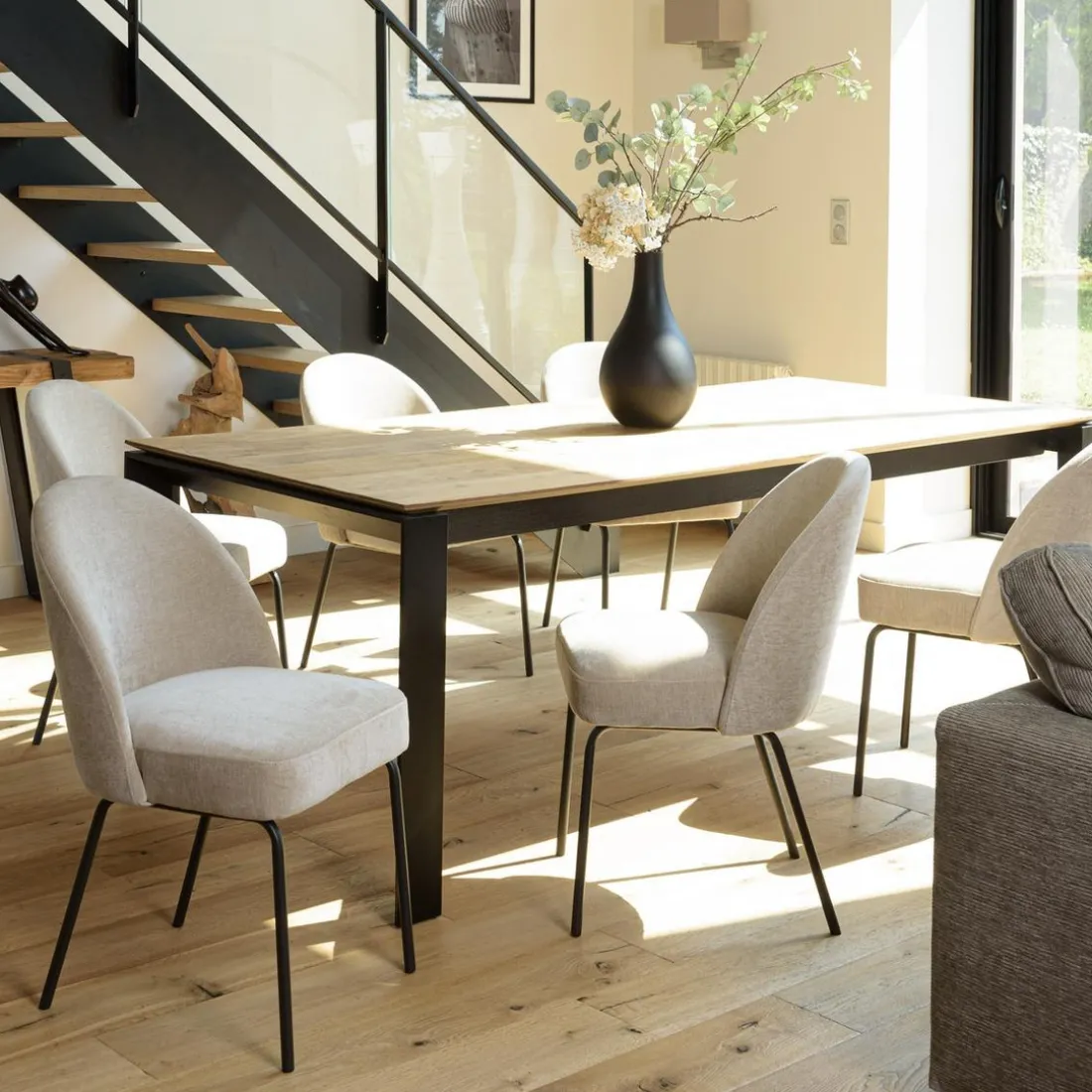 Caractéristiques Lot de 2 chaises tissu sable pieds acier noir ULYSSE