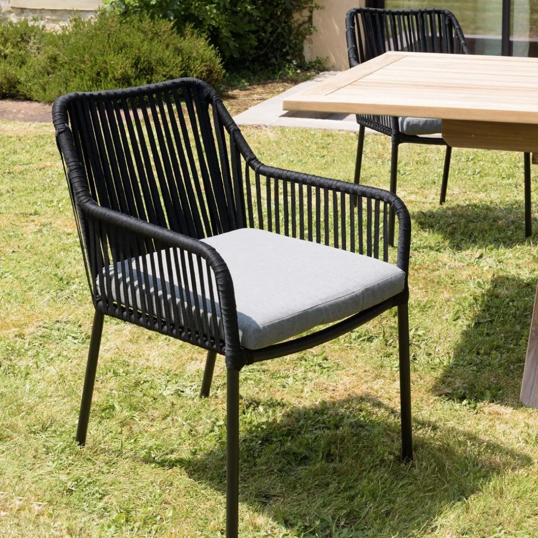 Caractéristiques Lot de 2 fauteuils cordage noir coussin assise gris anthracite MALO
