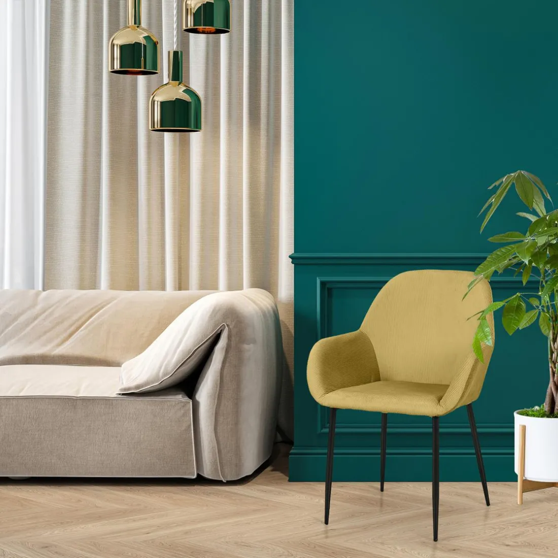 Caractéristiques Lot de 2 Fauteuils GIULIA Jaune Moutarde Velours Côtelé