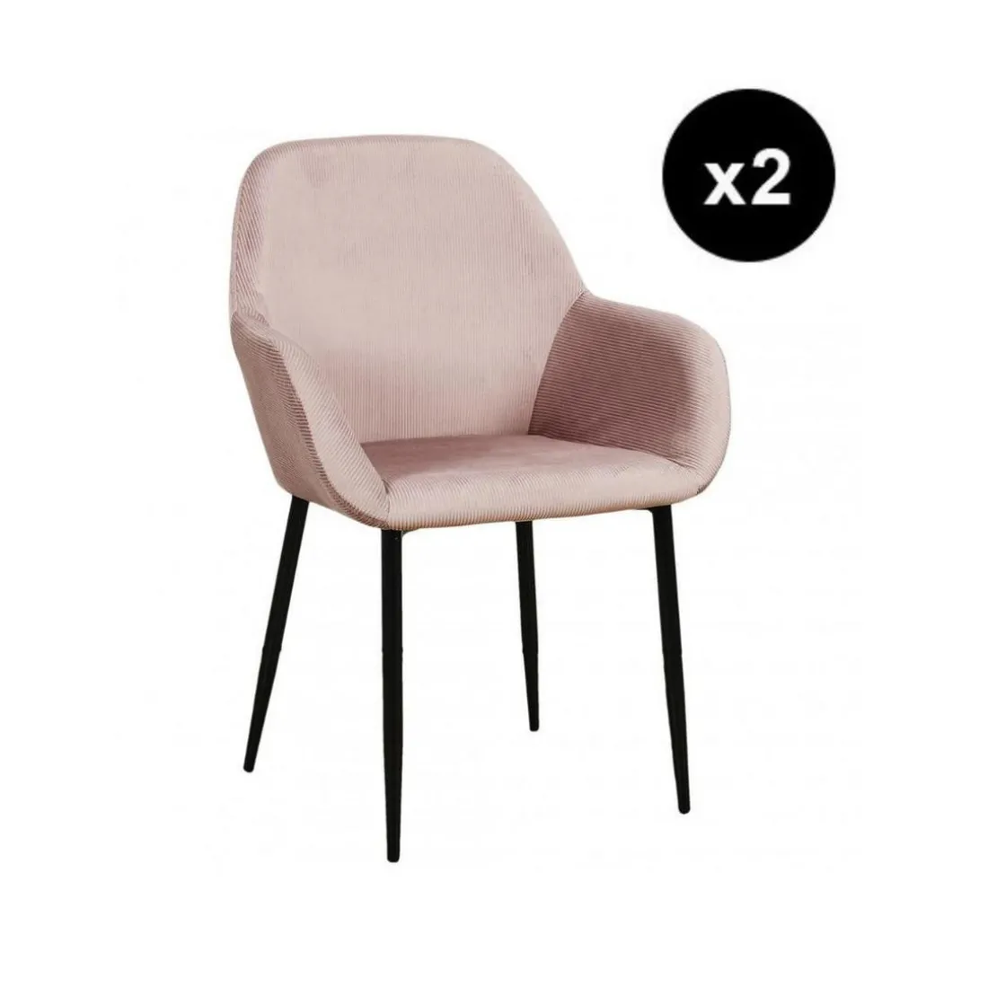 Caractéristiques Lot de 2 Fauteuils GIULIA Rose Velours Côtelé