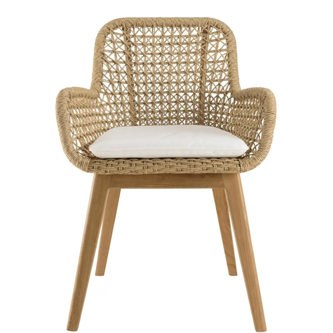 Caractéristiques Lot de 2 fauteuils jardin teck rotin synthétique et coussin blanc VALERIA
