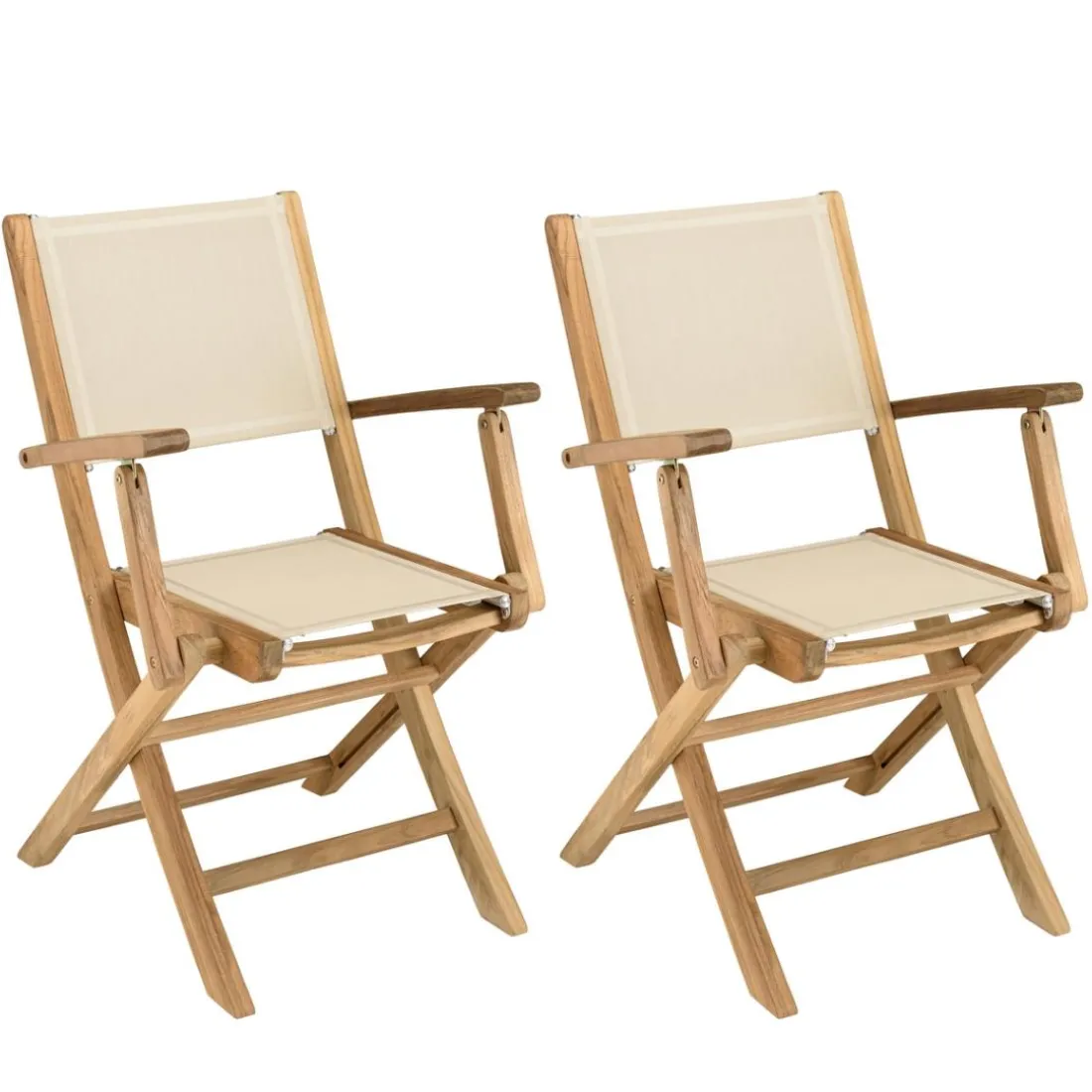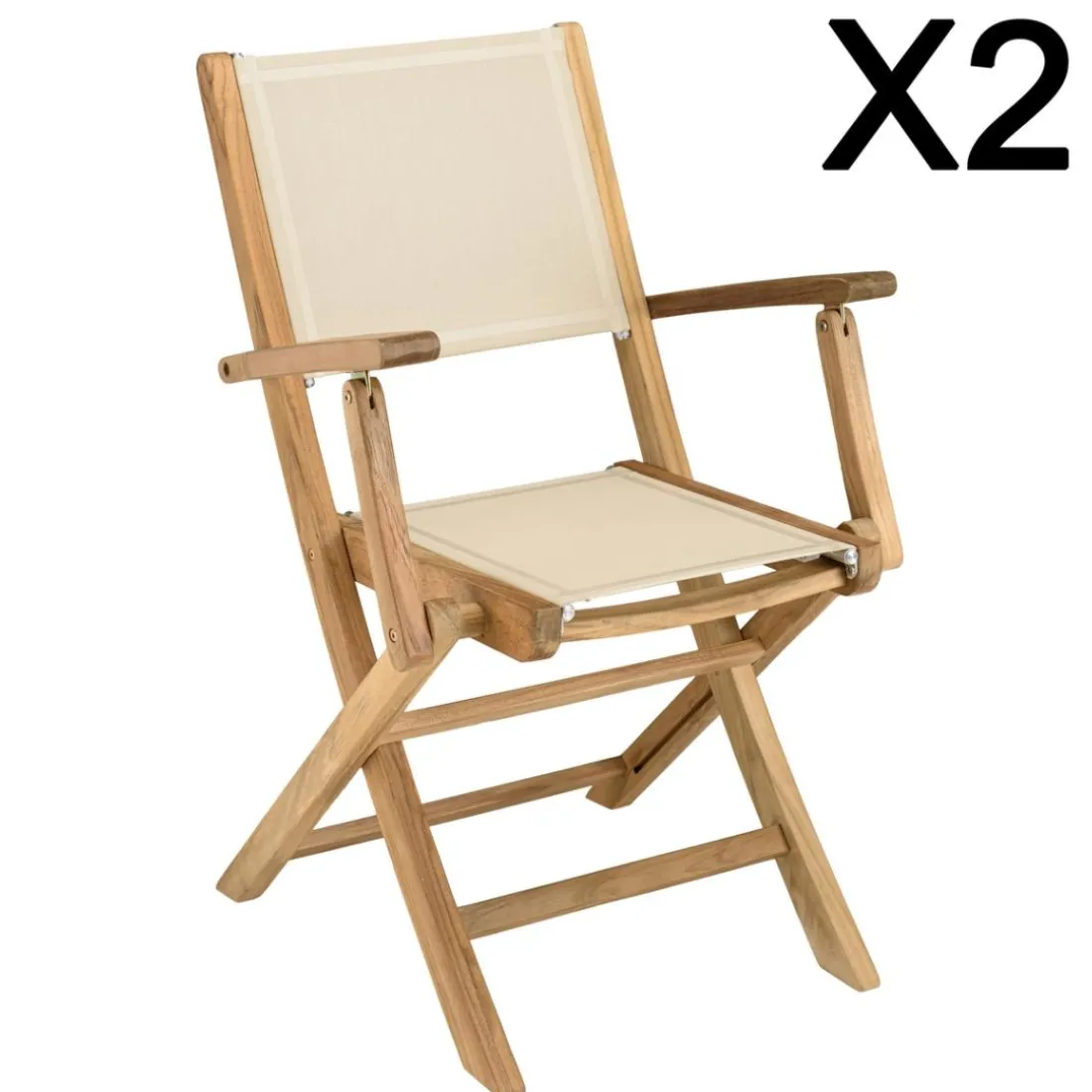 Caractéristiques Lot de 2 fauteuils pliants textilène couleur beige