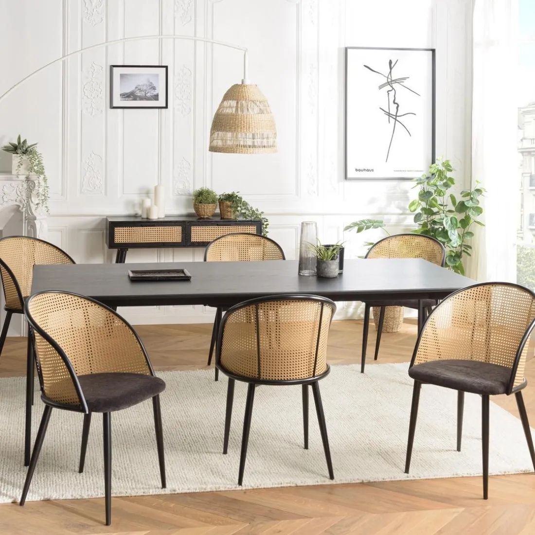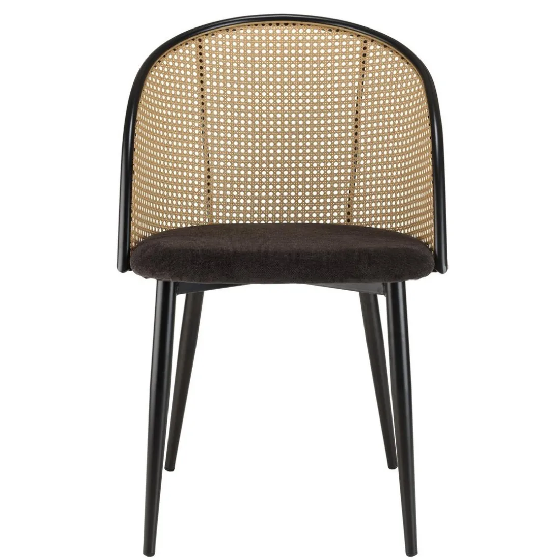 Caractéristiques Lot de 2 fauteuils tissu noir dossier arrondi effet cannage LEA