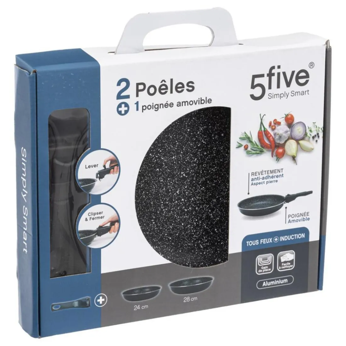 Caractéristiques Lot de 2 poêles pierres et poignée D24et28
