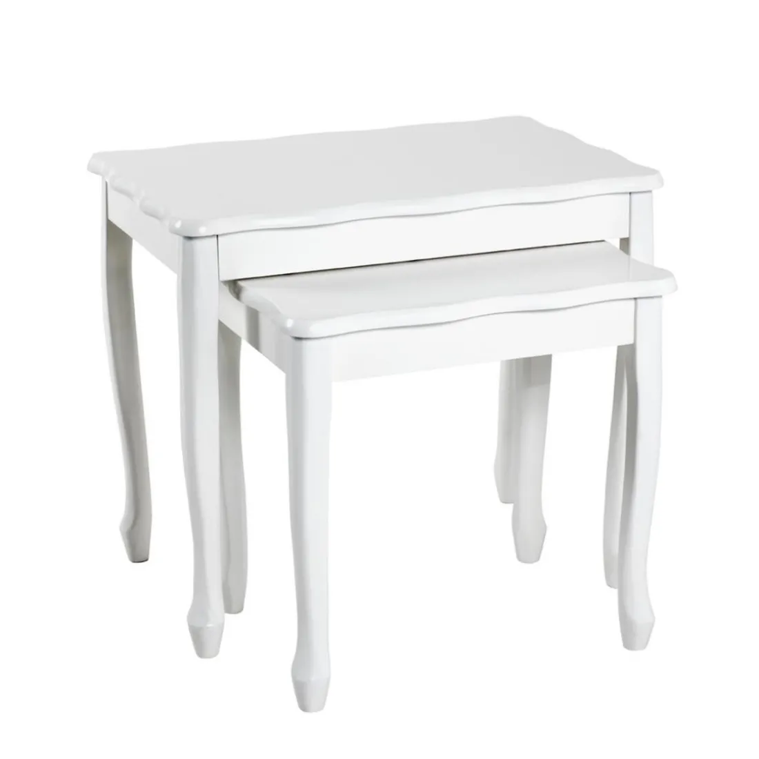 Caractéristiques Lot de 2 tables d’appoint structure en Bois massif laqué et plateaux laqué Blanc