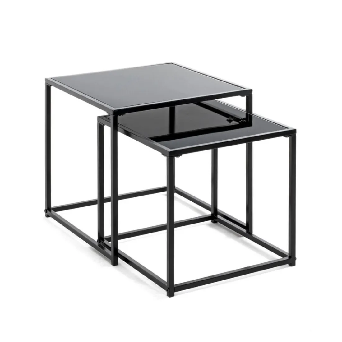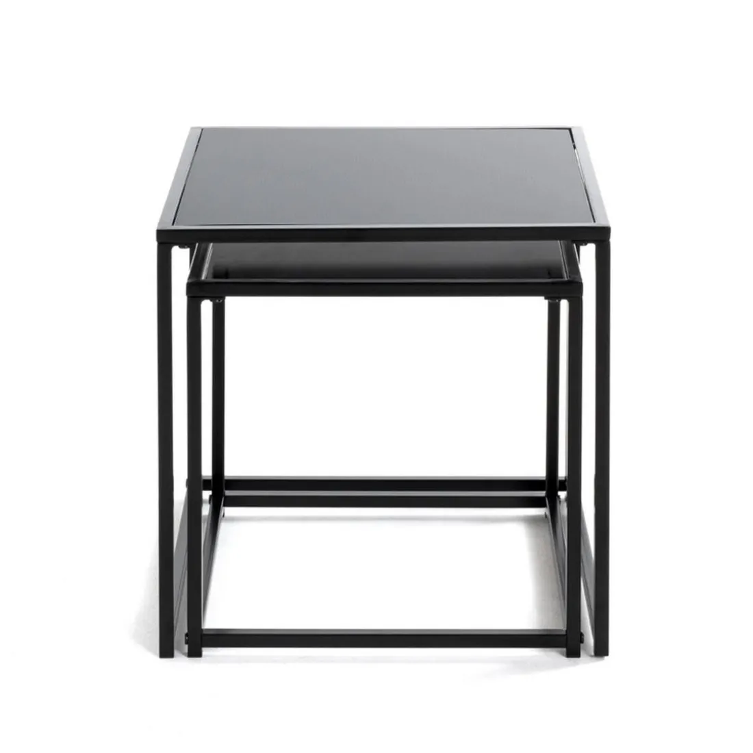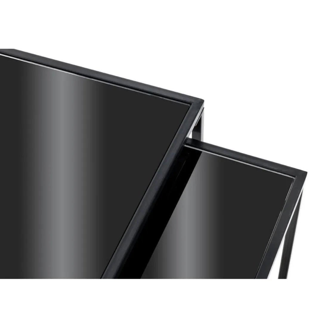 Caractéristiques Lot de 2 tables d’appoint verre trempé laqué noir
