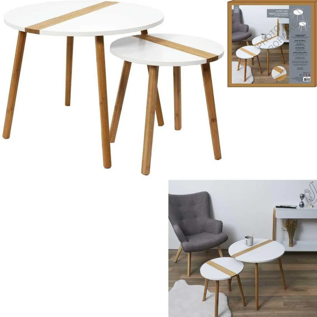 Accueillez vos convives dans une ambiance chaleureuse et conviviale avec ce Lot de 2 Tables Gigogne Bicolore Relief modulable.